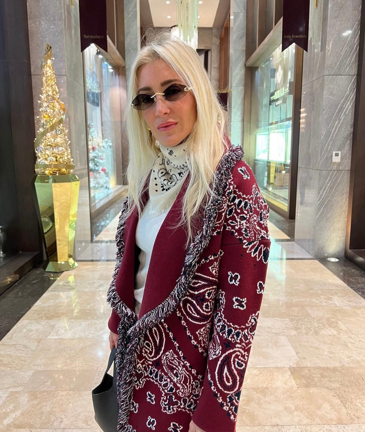 Fringed & belted jacquard cardigan