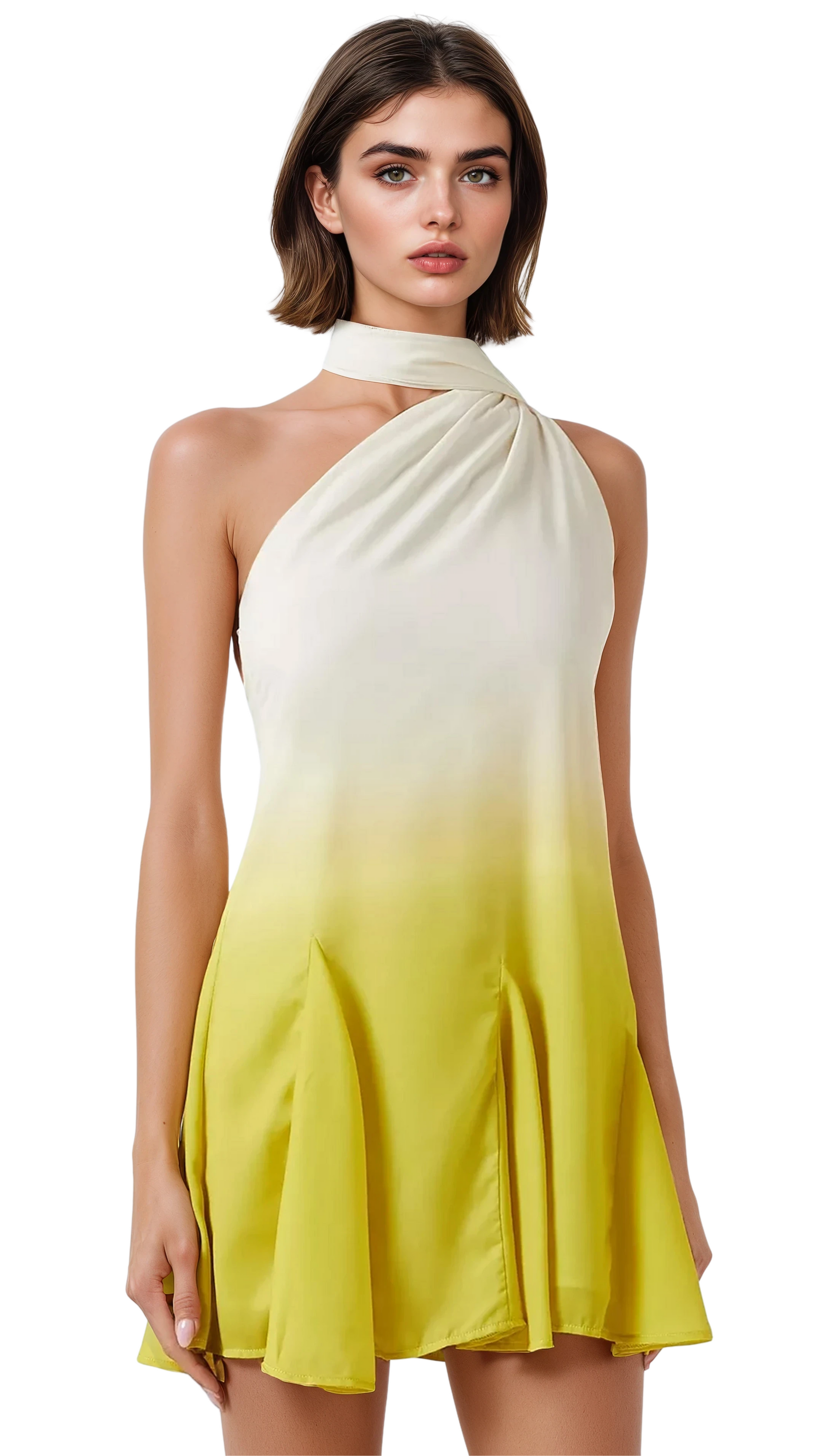 Introducing the "Ari Mini Dress" in Golden Milk – a one-shoulder silhouette with open back and flowing scarf detail. Designed with godets in the hemline for added movement, adjustable strap, back zipper closure, and fully lined in mini length.