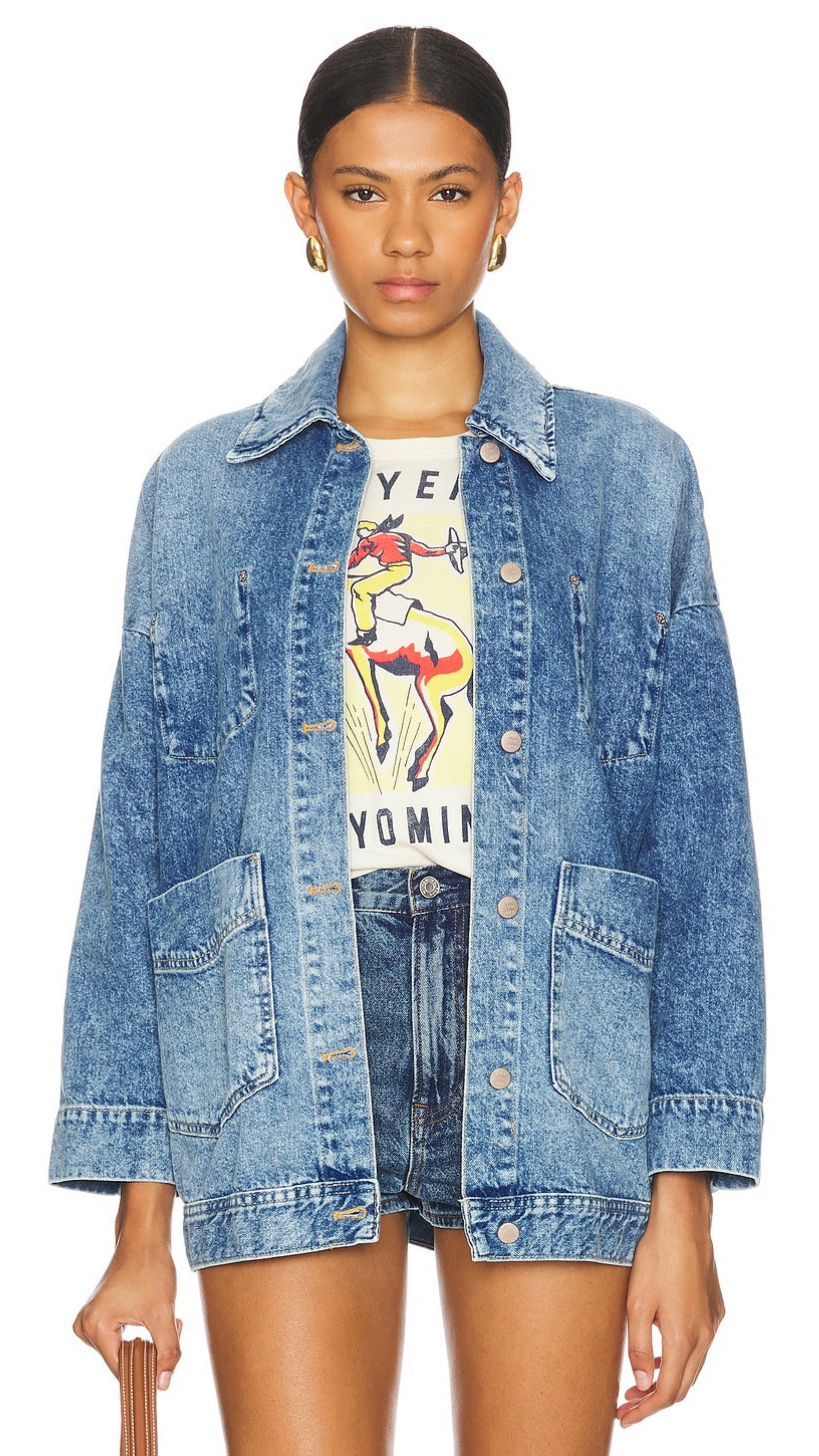 Statement graphics make this cotton-twill jacket from We The Free absolutely unmissable.