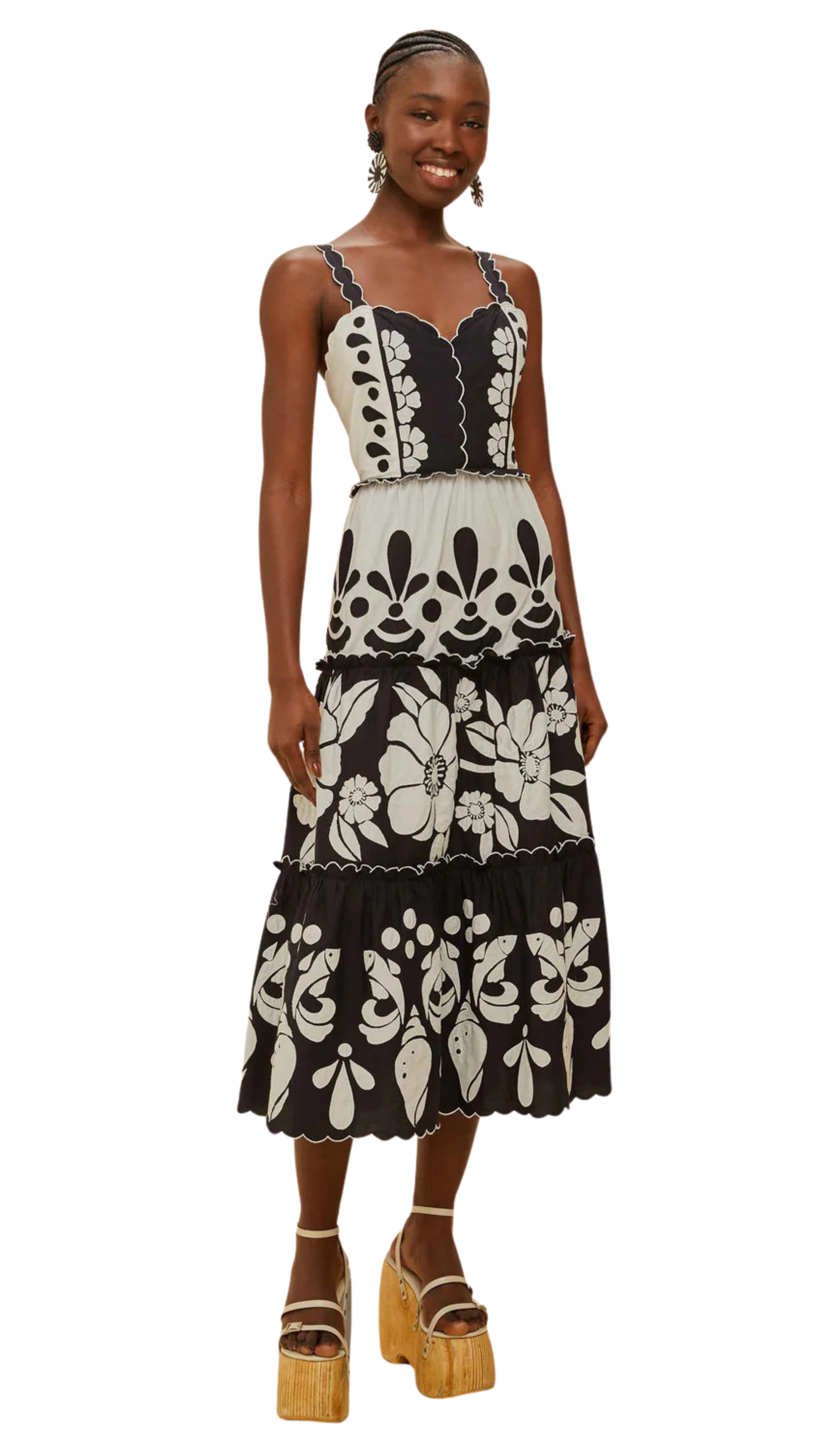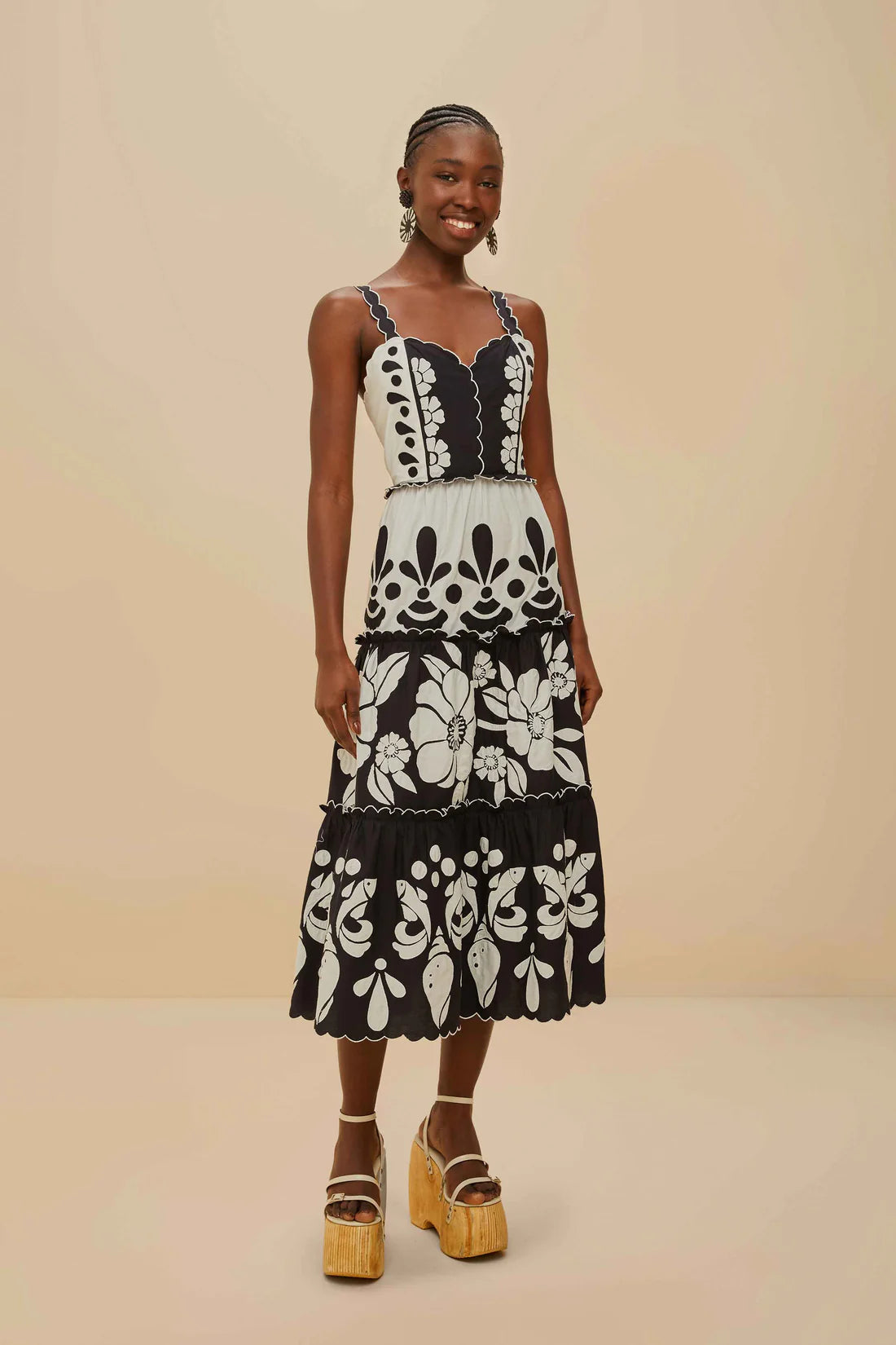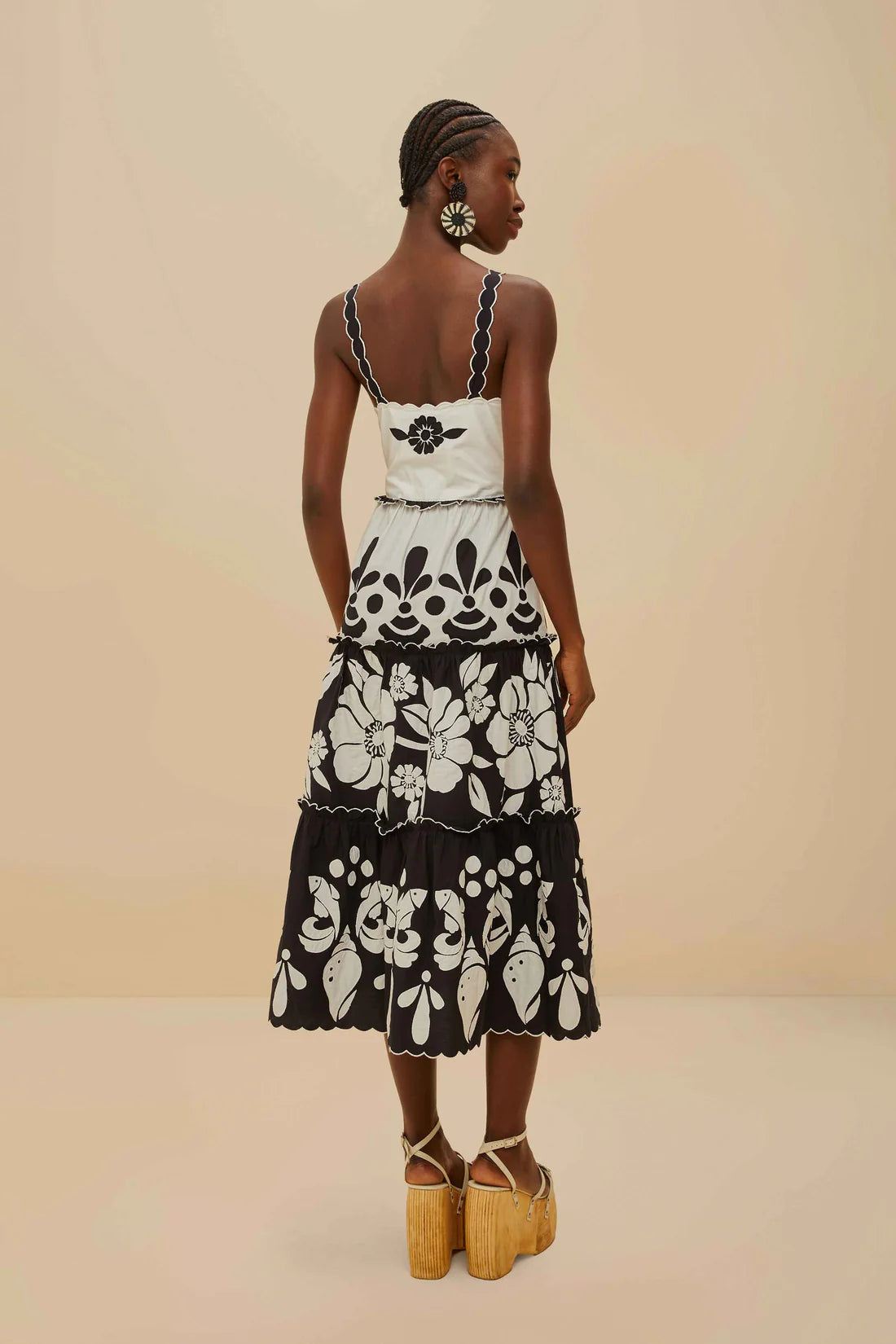 Black And White Summer Cutwork Organic Cotton Midi Dress