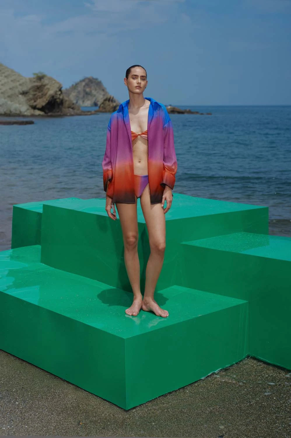 Hand wash your garment by turning it inside out and gently soaking it in cold water for 5-10 minutes, then rinse. Lay it flat to dry in the shade to preserve both the fabric and shape. Do not tumble dry, bleach, or dry clean, and avoid high heat and contact with rough surfaces or accessories.