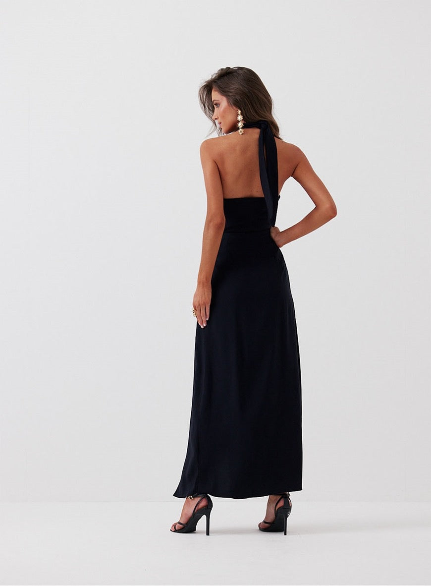 The Midi Dress with Wrap Detail Fiorella is an elegant and sophisticated option for various special occasions. Its unique and feminine design offers a modern and stylish look, highlighting the beauty of a woman with class and charm.The dress features a slim silhouette and comfortable fit. It has a neckline with straps, a wrap detail over the bust, a tie closure behind the neck, side opening, and cutout details.