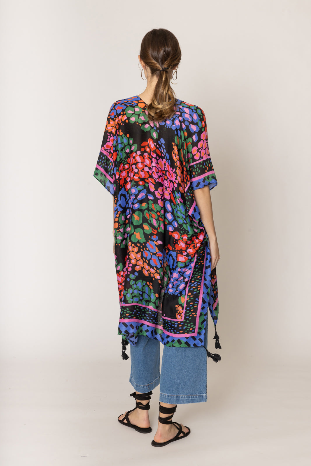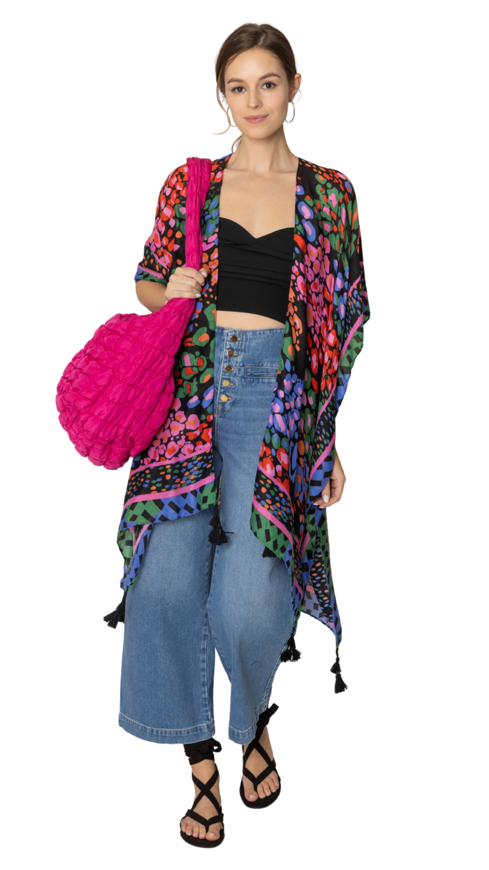- Style Details: kimono with tassels. Perfect over a tee or swimsuit.