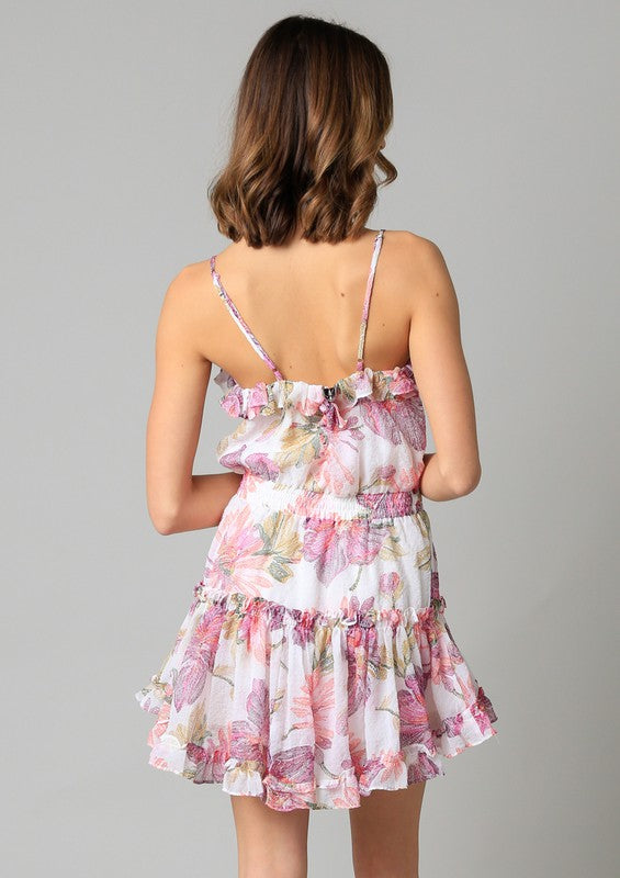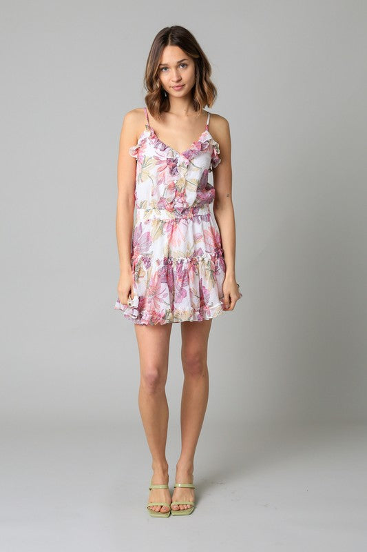 Introducing the Flower tactics Dress: the ultimate fashion statement for when you wanna feel extra! This flouncy cutie is designed to be the life of the party with a V neckline, ruffle trim, adjustable spaghetti straps for just the right fit, cute cinched waistband, and floral detailing. Accessories this dress with some Zoe Belle earrings and a St Barths bag for a tropical dinner look!