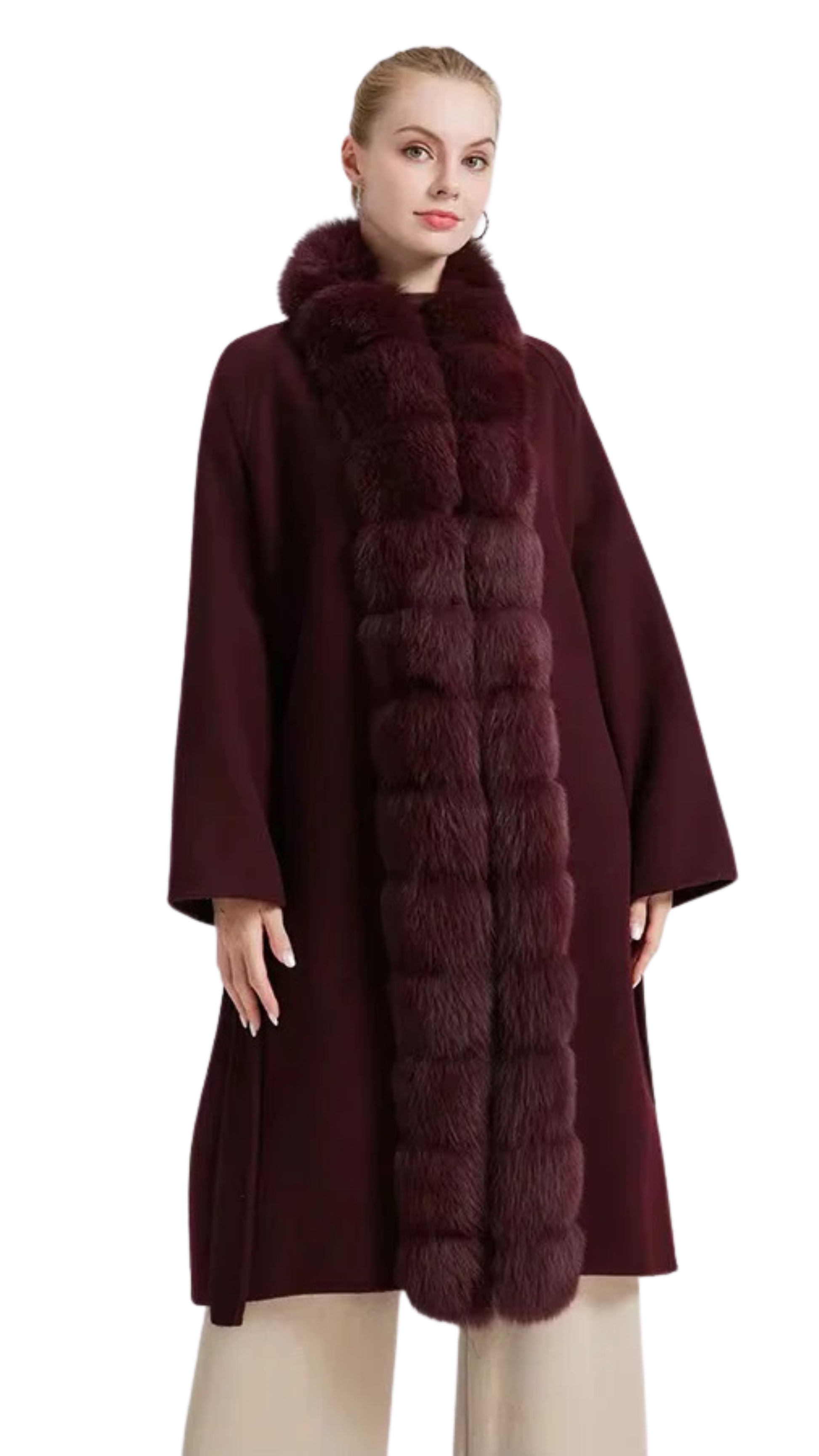 - Genuine Fox Fur Trim: Adorned with delicate, genuine fox fur details along the collar and front opening for a truly indulgent feel.