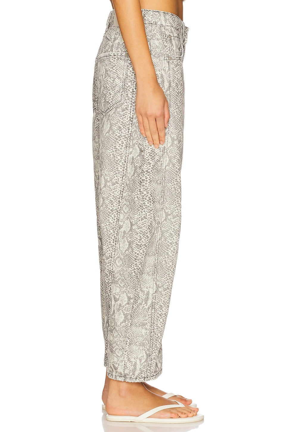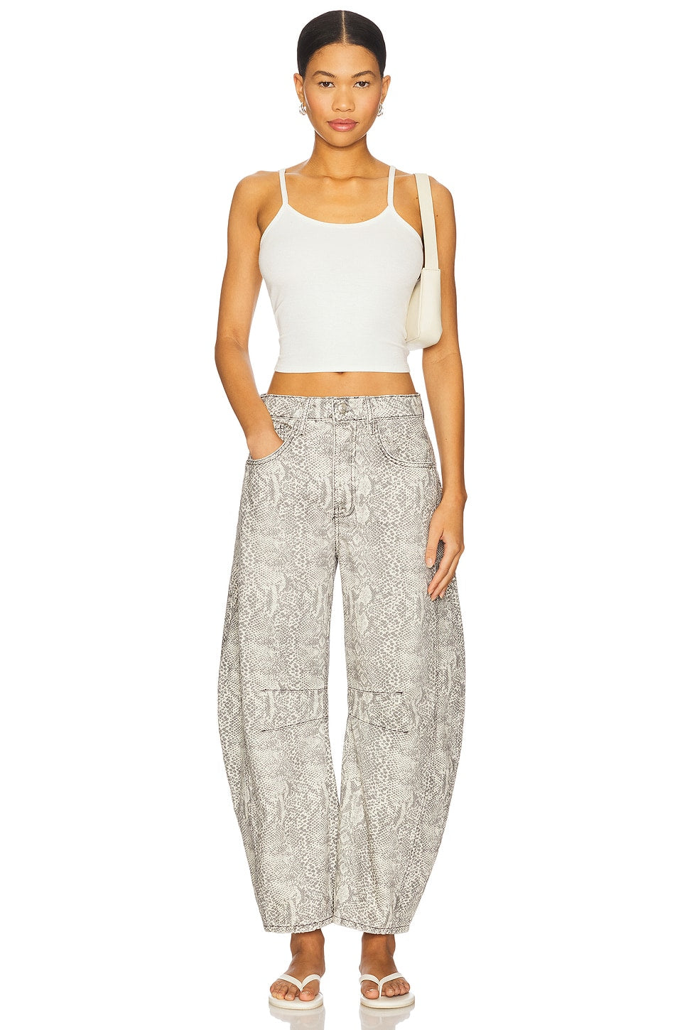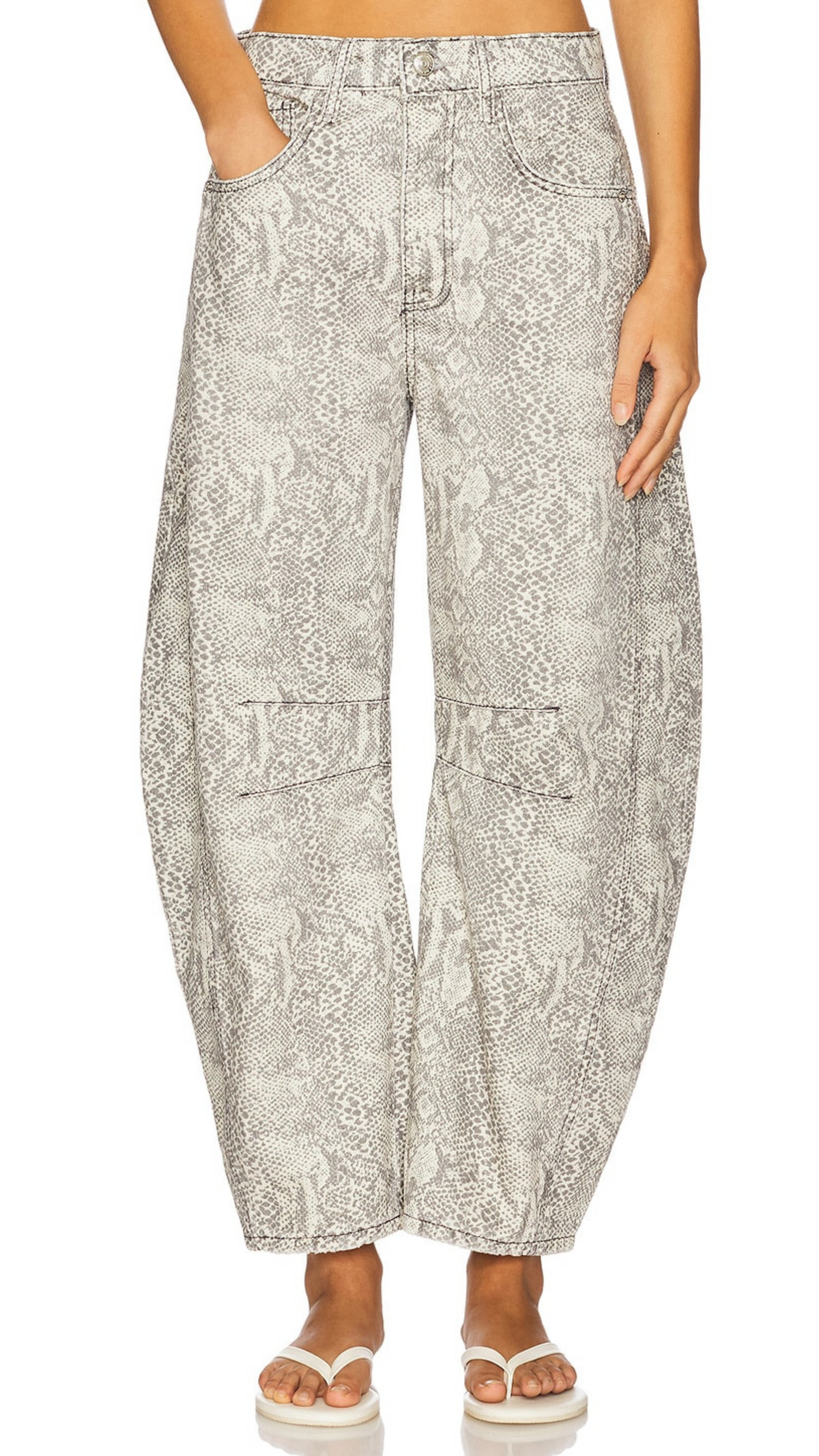 So bold barrel jeans from our We The Free collection featured in a mid-rise fit with subtle distressed detailing and wide-legs that taper at the ankle.