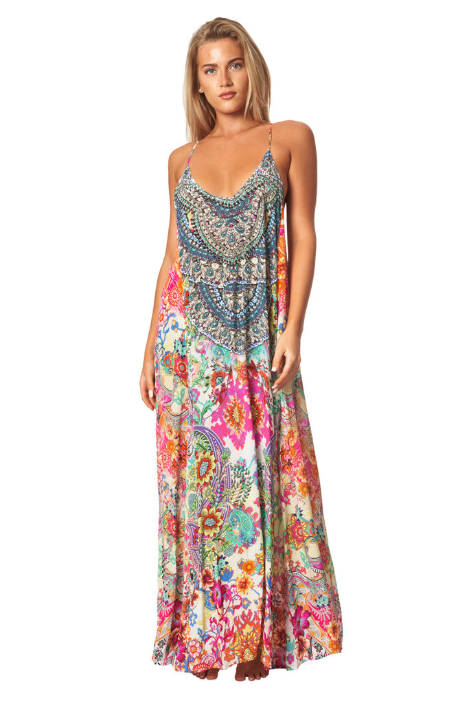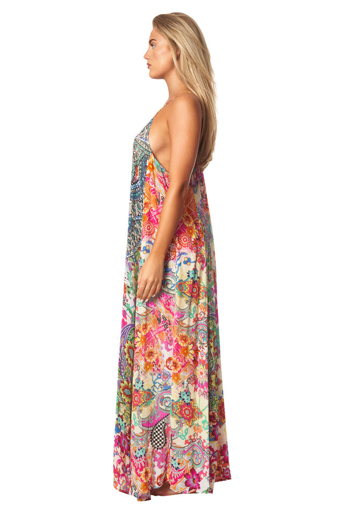 This stunning maxi halter dress is the perfect choice for a summer day out. The vibrant paisley print is eye-catching and the loose, flowing fit is comfortable and flattering. The dress is made from high-quality materials and is sure to turn heads wherever you go.