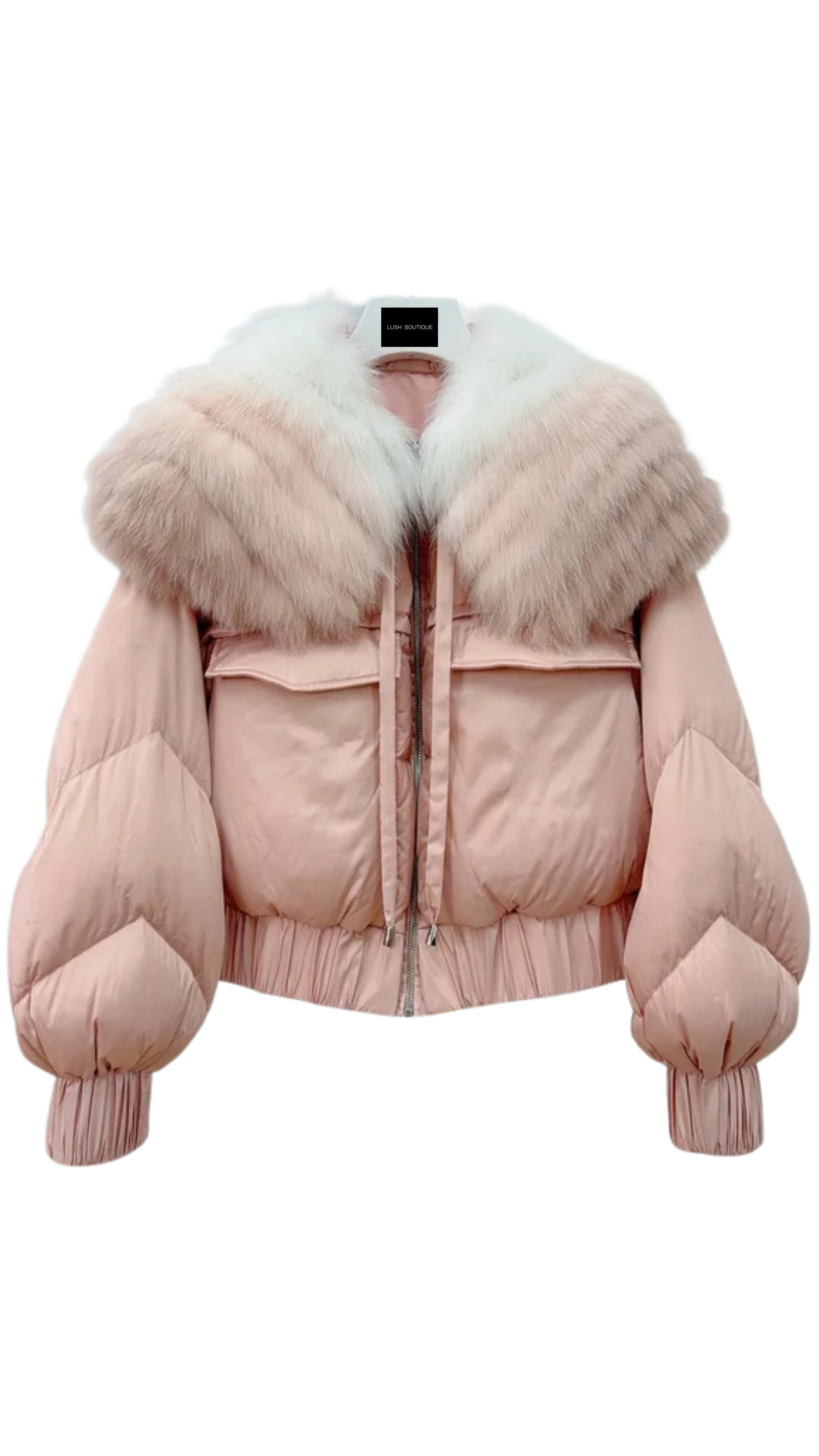 Janna Fox Collar Fur Puffer Jacket- Peach