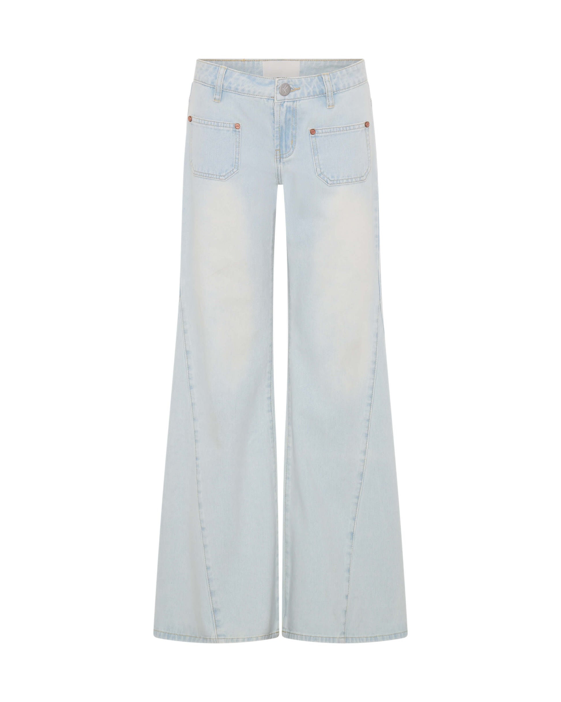 The JOHNNIES LOW WAIST WIDE LEG FLARED DENIM JEANS.