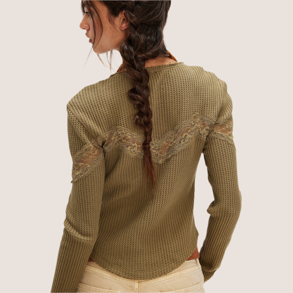 Lace trims give this waffle-knit cardigan the perfect femme touch.