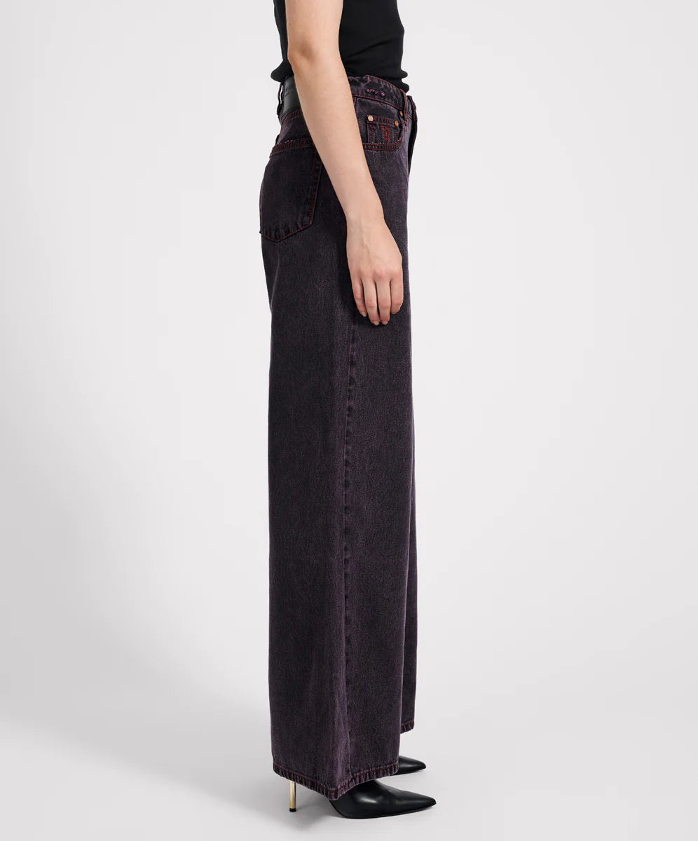 Love Machines Mid Waist Super Wide Leg Denim Jeans- Black Pink