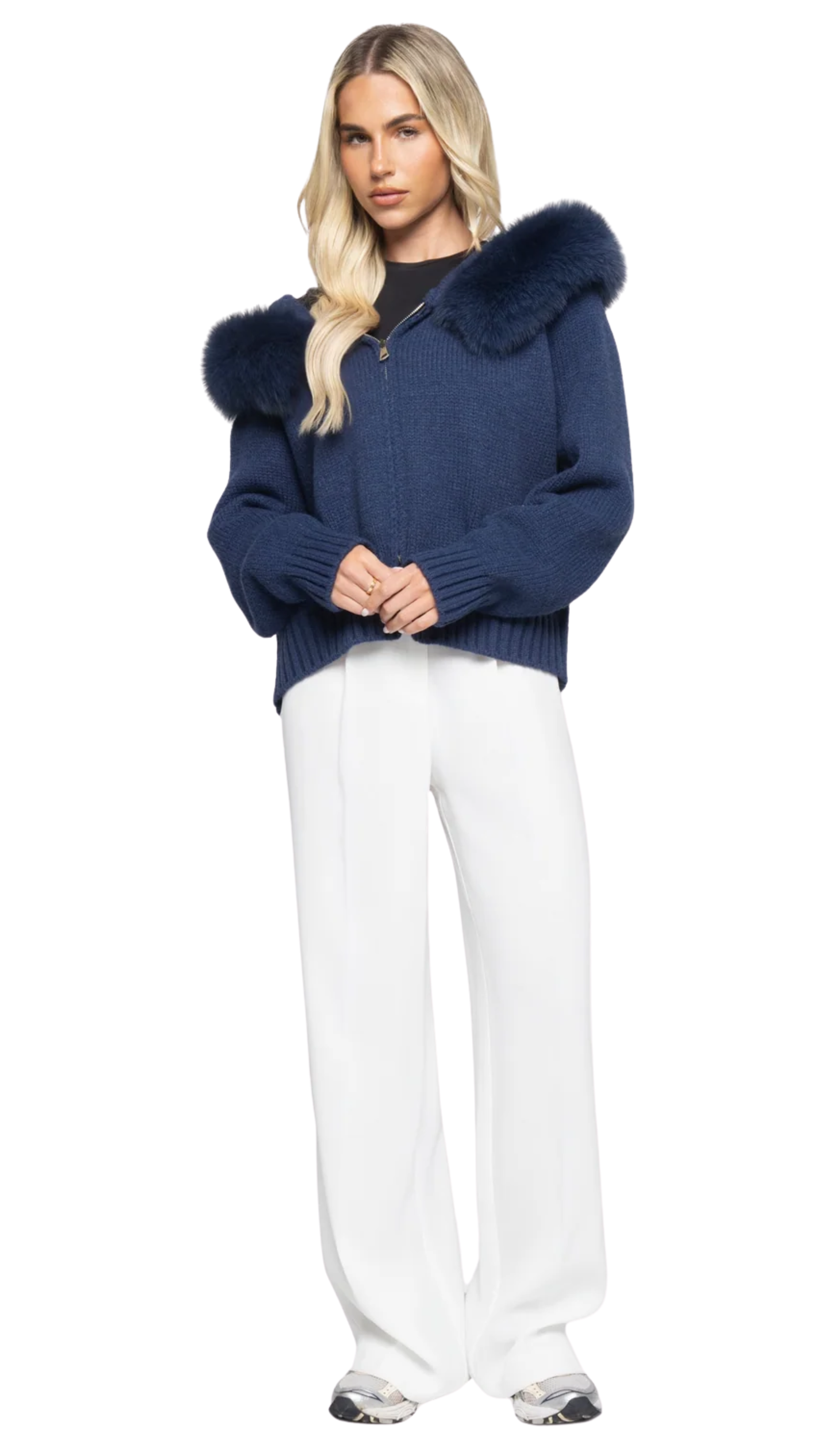 Crafted from a premium wool blend, it features a front zip closure and a detachable hood trimmed with soft faux fur, giving you endless styling possibilities. Whether worn loose for a relaxed, oversized fit or cinched at the waist with the included belt, this cardigan adapts effortlessly to every occasion.