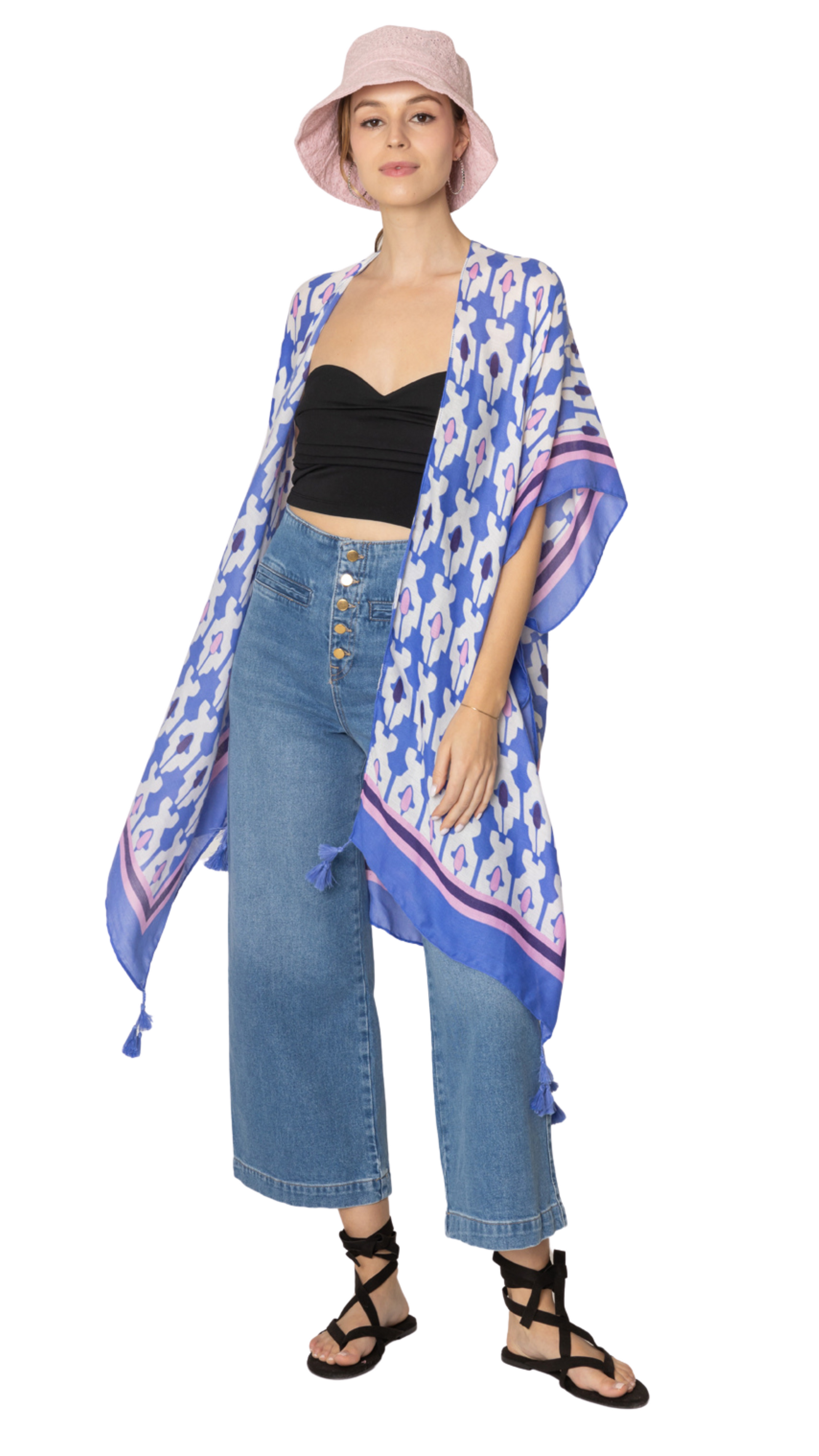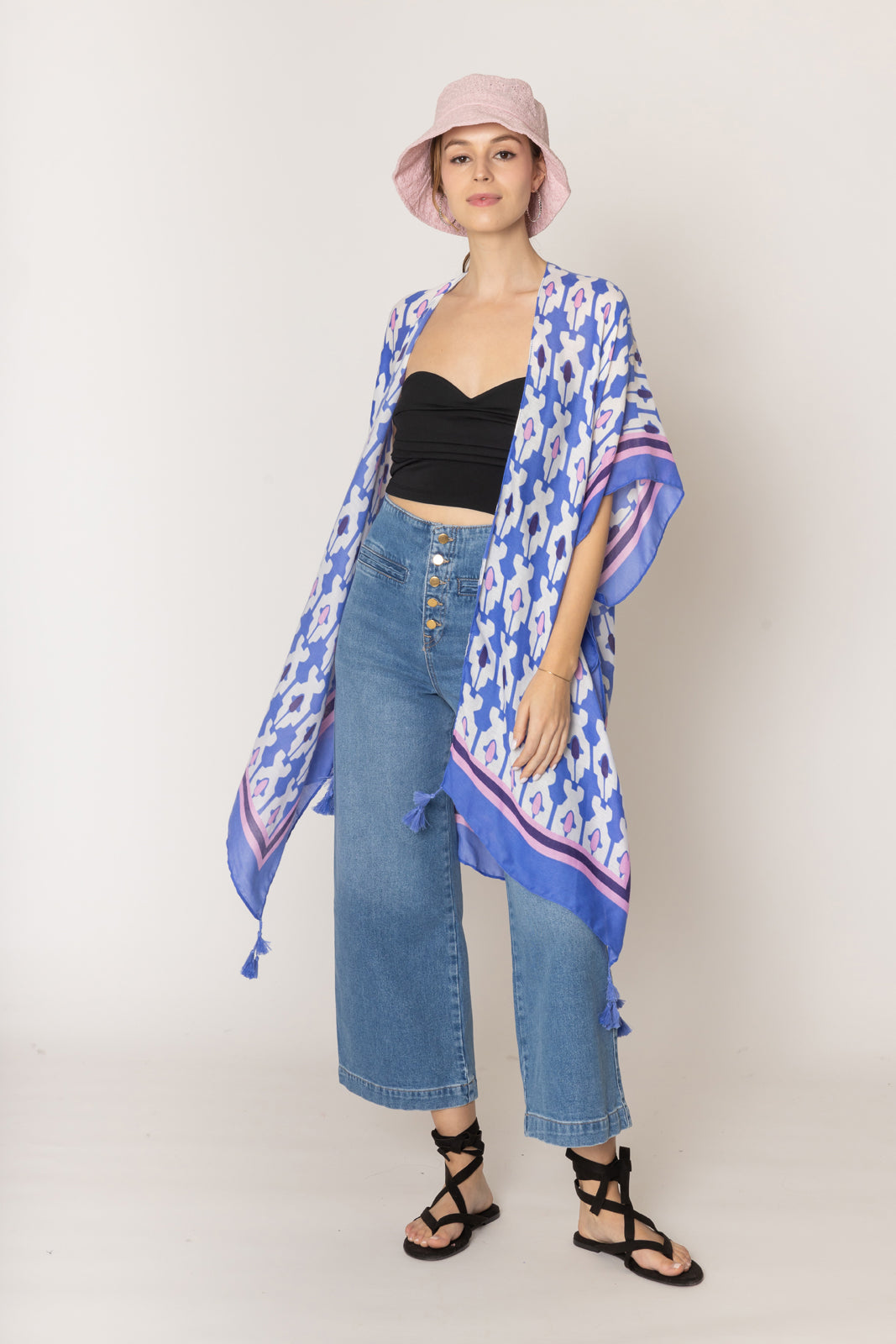 - Style Details: kimono with tassels. Perfect over a tee or swimsuit.