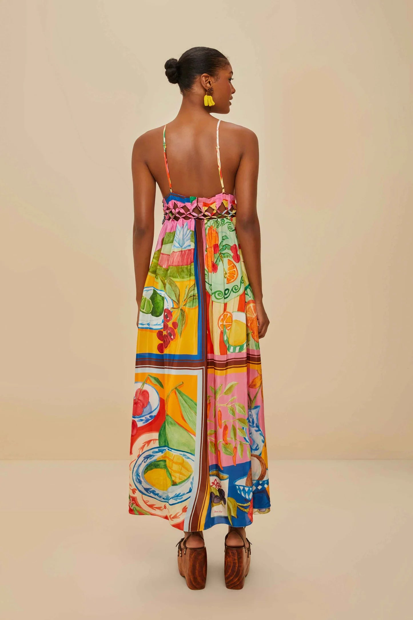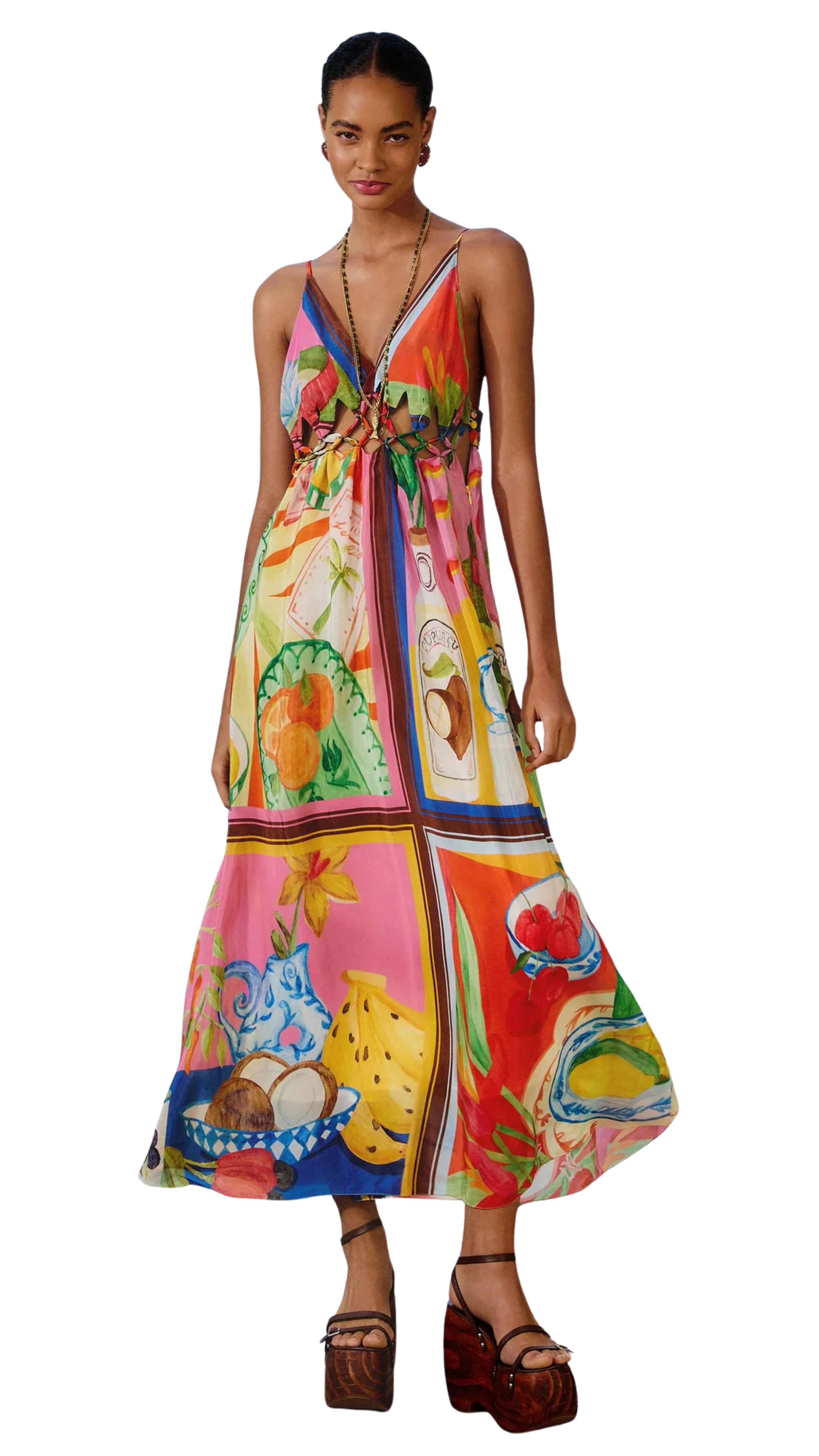 Multicolor Summer Picnic Macrame Yoke Maxi Dress