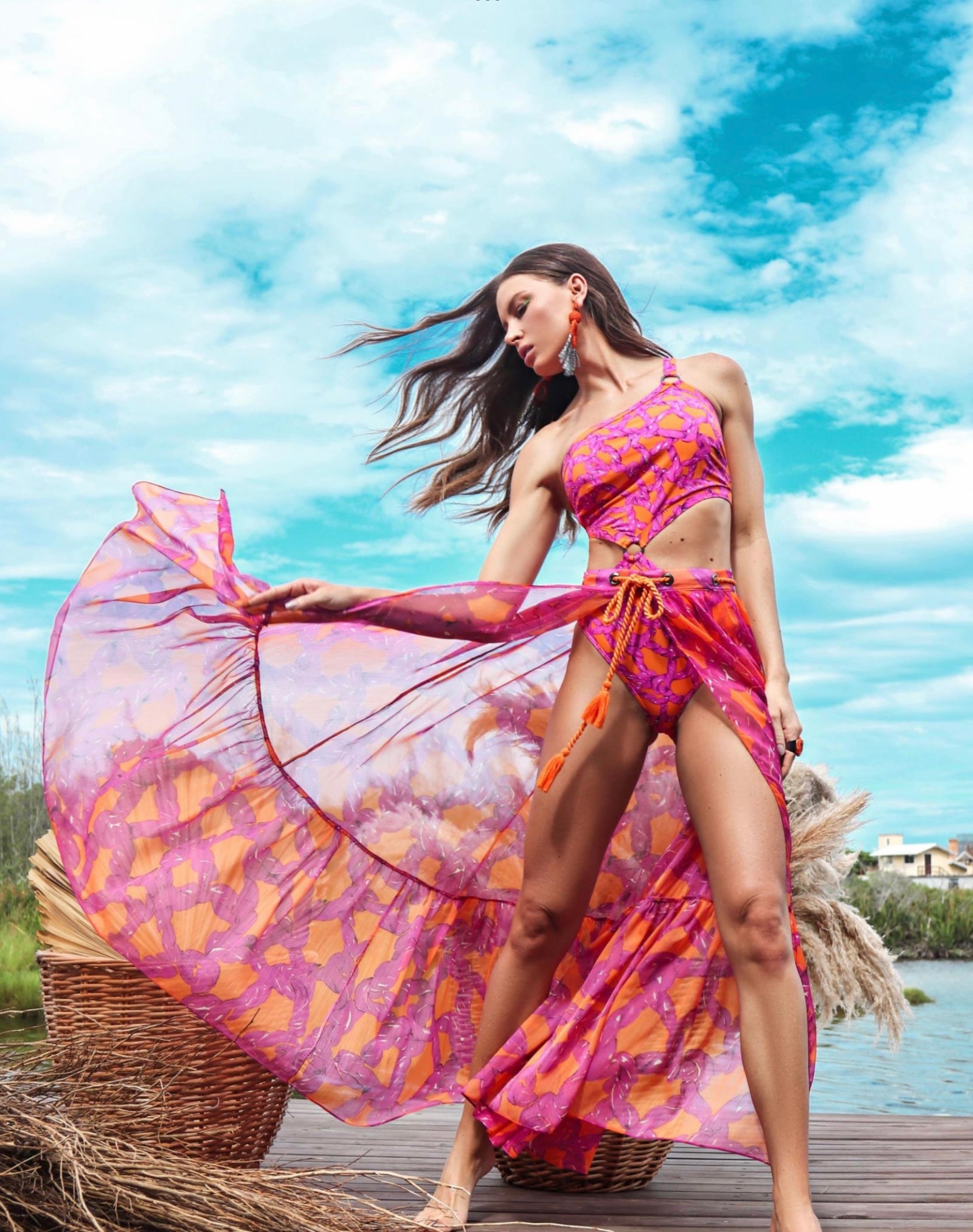 Pink Ropes one shoulder swimsuit