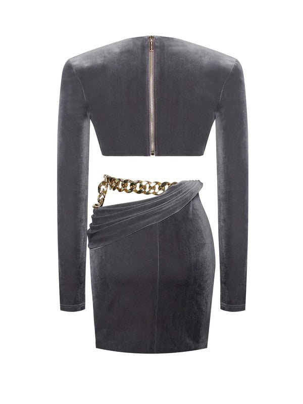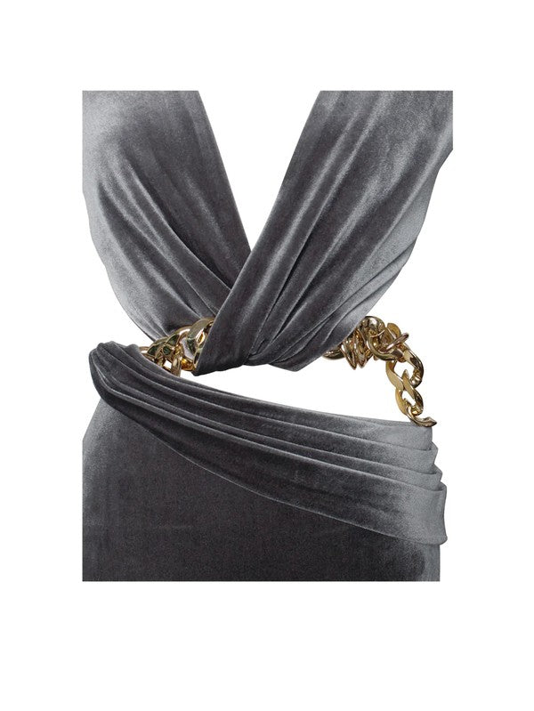 - Material: Stretch Velvet / Gold Chain