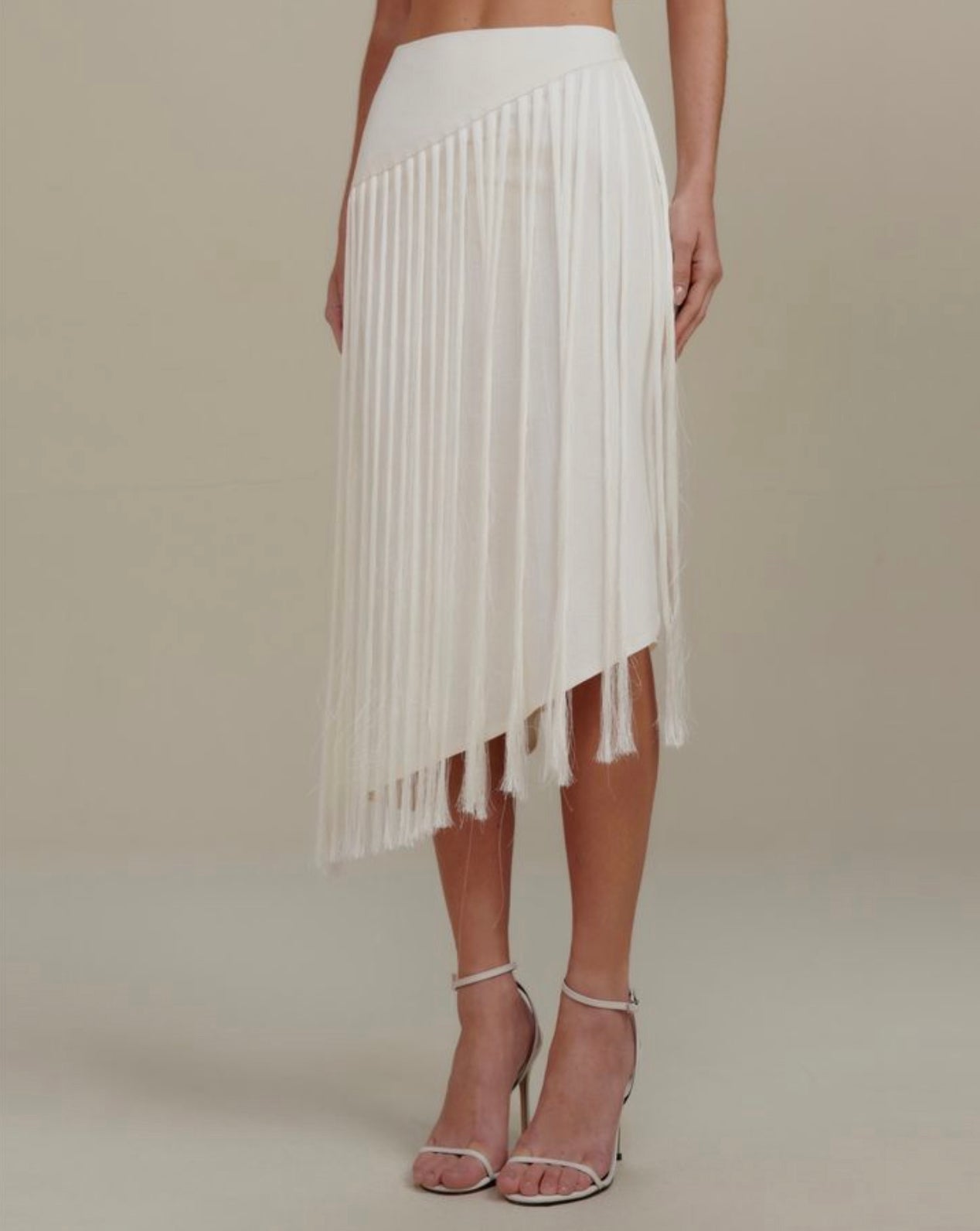 Elevate your wardrobe with the Jala Set from Lush Boutique. This exquisite ensemble features a stylish bandeau top paired with a flowing, fringes skirt. The minimalist design ensures versatility, perfect for both casual outings and elegant events. The lightweight, high-quality fabric promises comfort while enhancing your silhouette. Make a statement with the Jala Set and embrace the effortless elegance it offers.