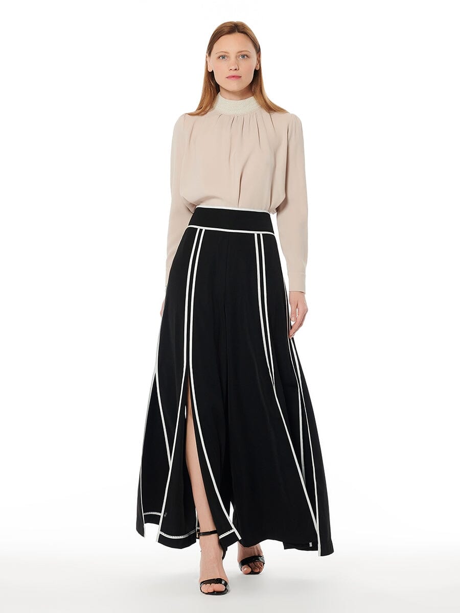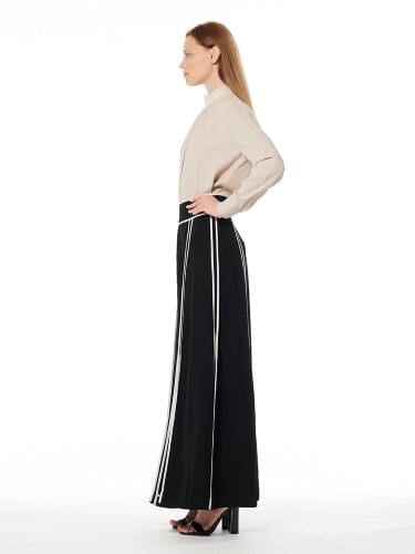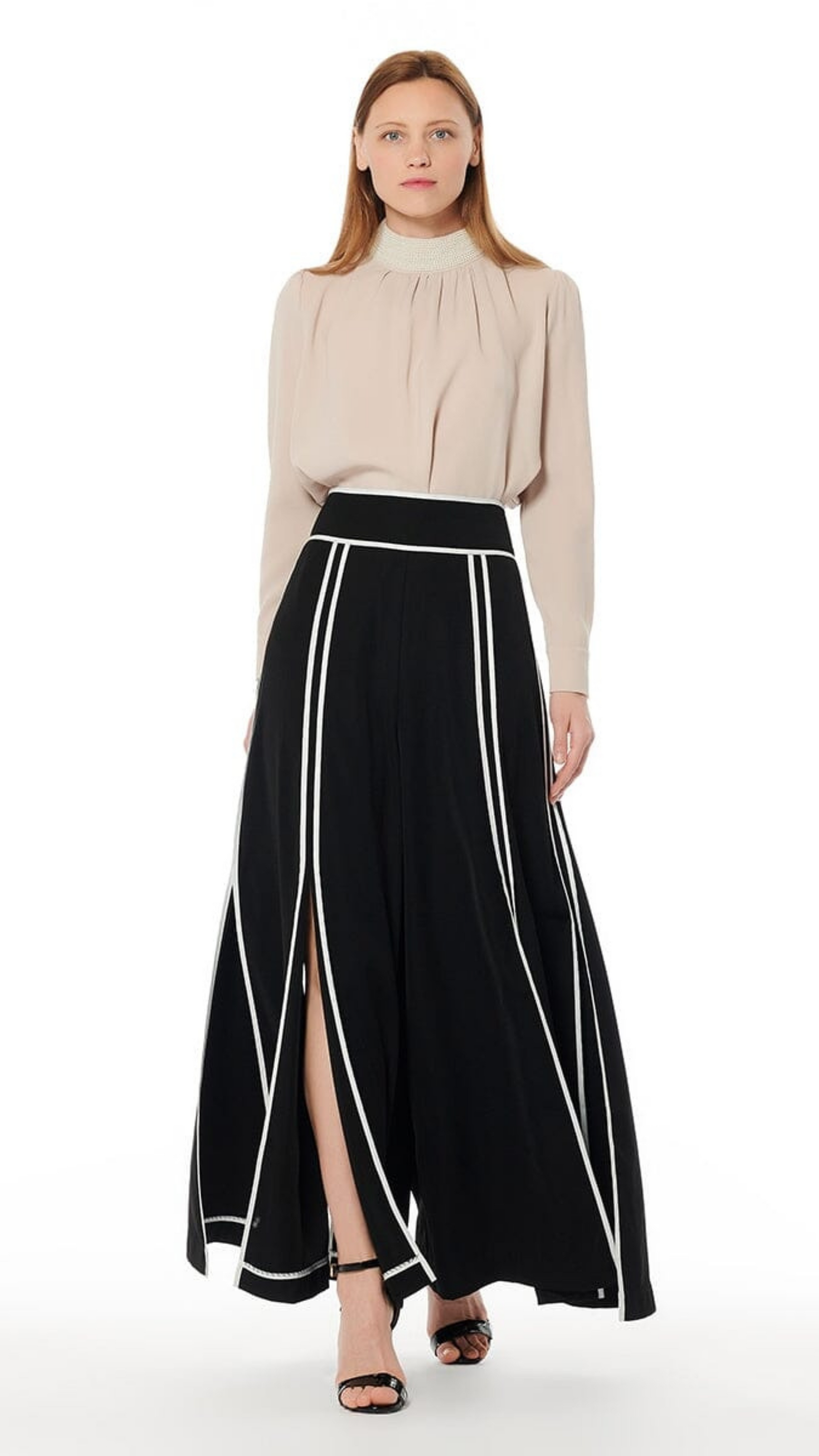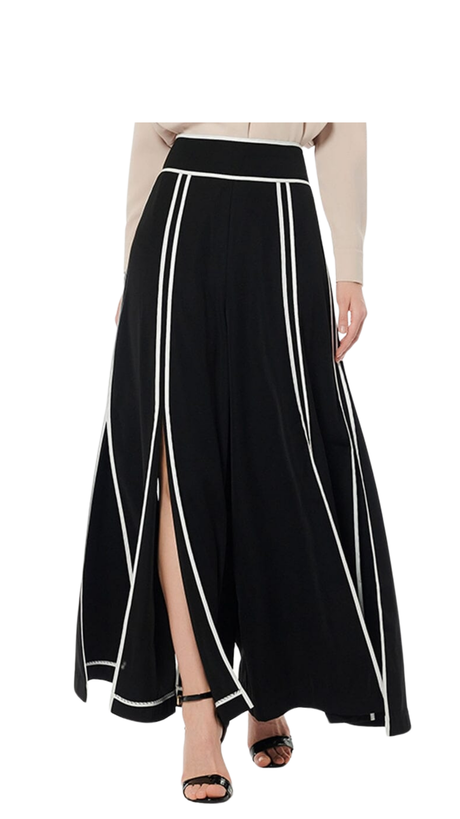 Introducing our avant-garde black pants, redefining modern elegance with a daring edge! These meticulously crafted pants boast not one, but two sleek slits at the front and back, exuding confidence and sophistication. Enhanced with striking white edges, they offer a captivating contrast that commands attention. Elevate your style effortlessly with these statement-making pants, designed to turn heads at every turn. Whether for a night out or a special occasion, these pants promise to make a bold fashion statement while ensuring comfort and flair.