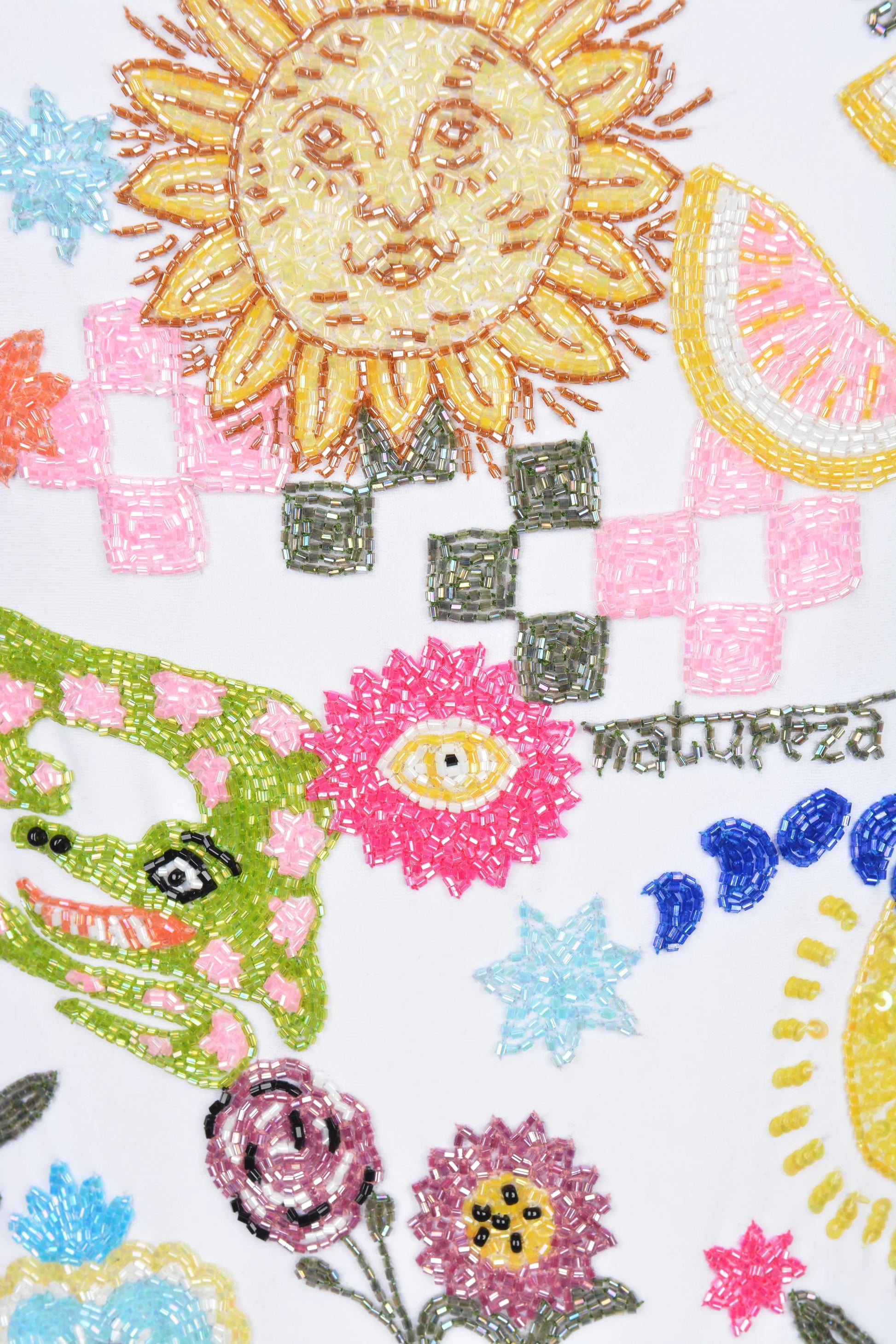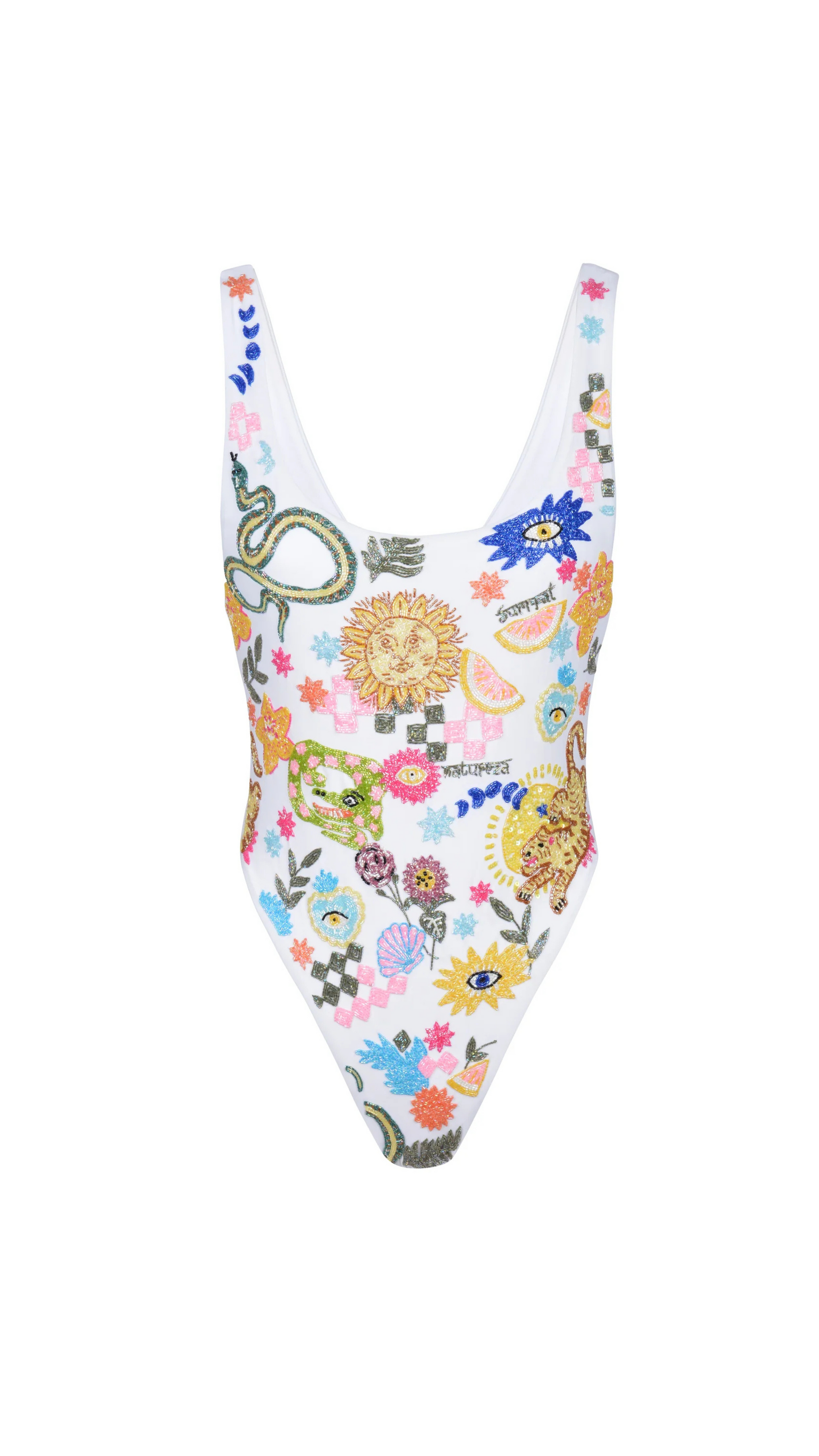 The Hand-Beaded Sunshine Inspired Swimsuit combines artistry and elegance, showcasing intricate hand-beaded detailing. Set against a timeless, elegant backdrop, this design evokes fluidity and movement, offering a sophisticated and sculptural silhouette. Featuring a high-cut leg, flattering scoop neck, and delicate straps, the swimsuit is finished with a daring low back to enhance its minimalist yet bold appeal. A refined choice for those seeking a statement piece by the water, where craftsmanship meets luxury.
