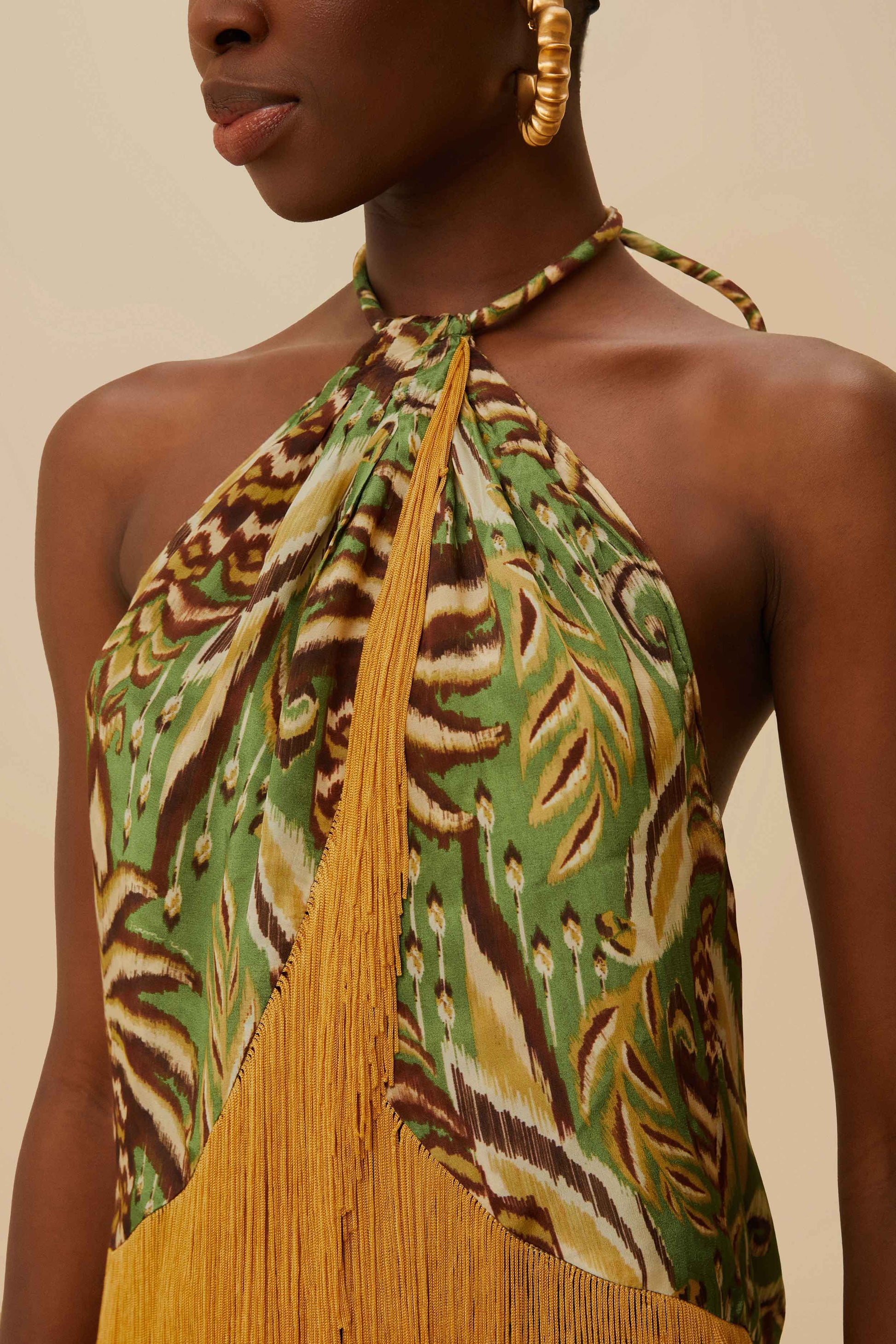 The Pineapple Tapestry Green Fringe Midi Skirt Set