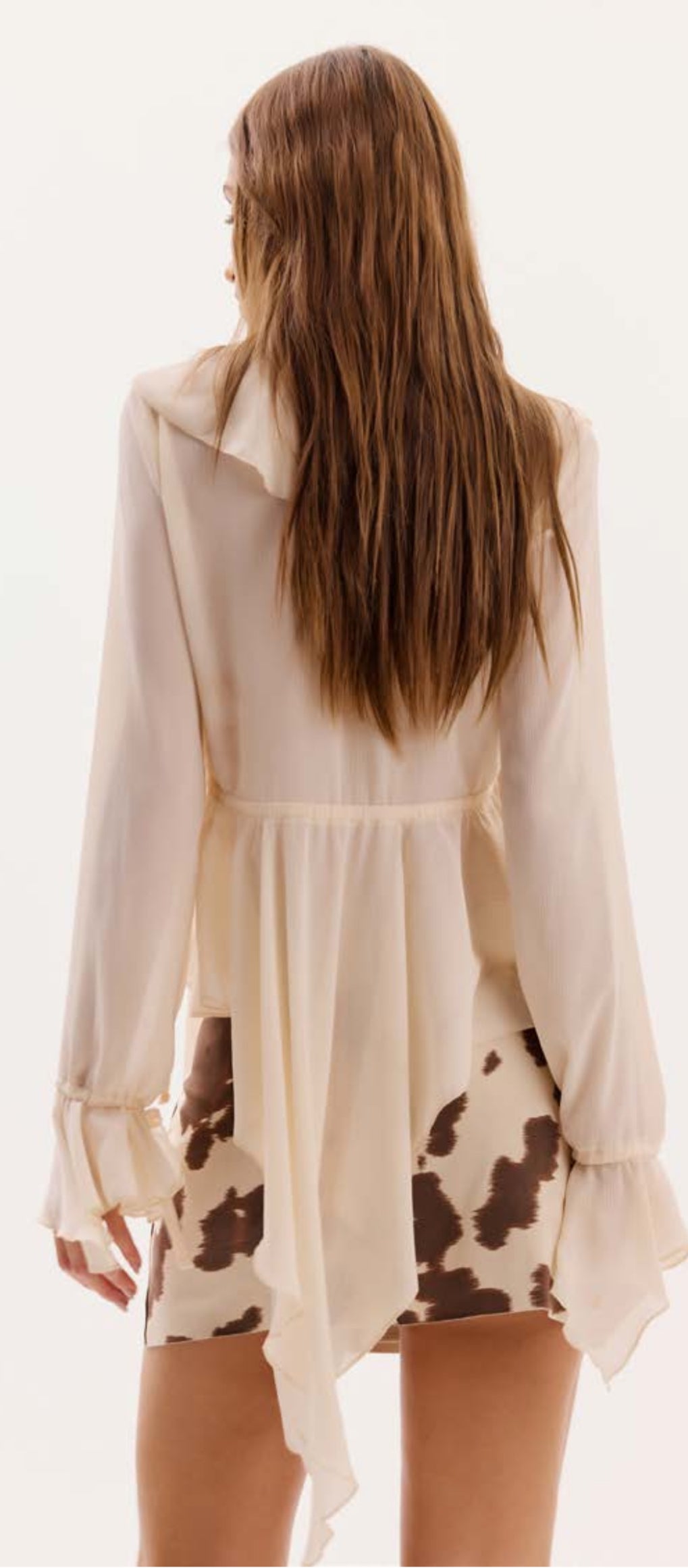Design: Cow print is the focal point, giving a modern western impact; mini silhouette enhances the figure and adds a youthful, daring touch