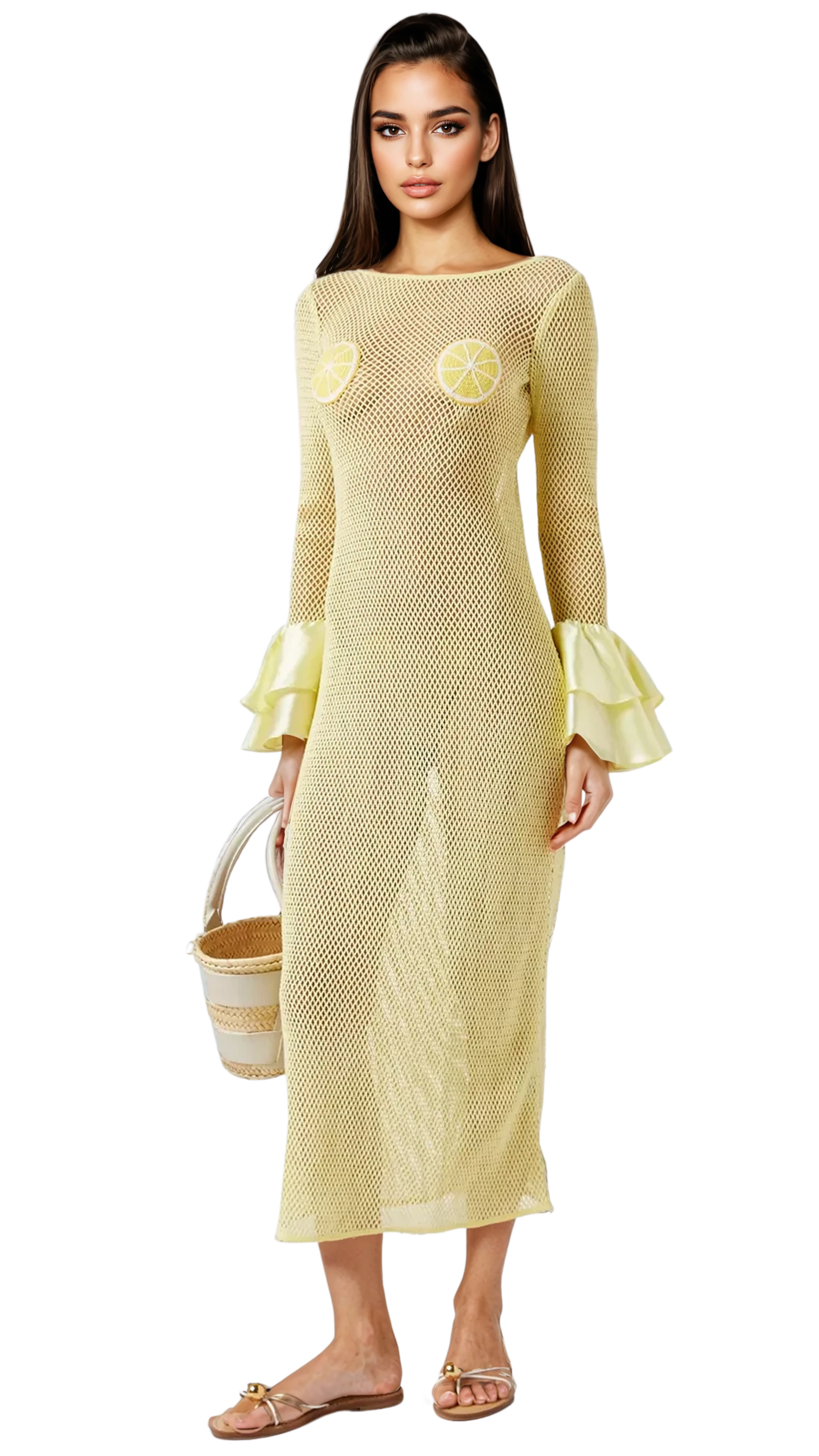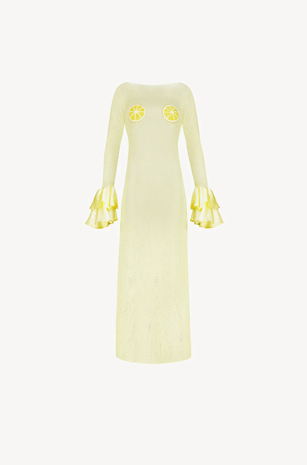 The Treasure Lemon Dress channels sunkissed irreverence with a twist of elegance — made for balmy escapes where the dress code is playfully unexpected.