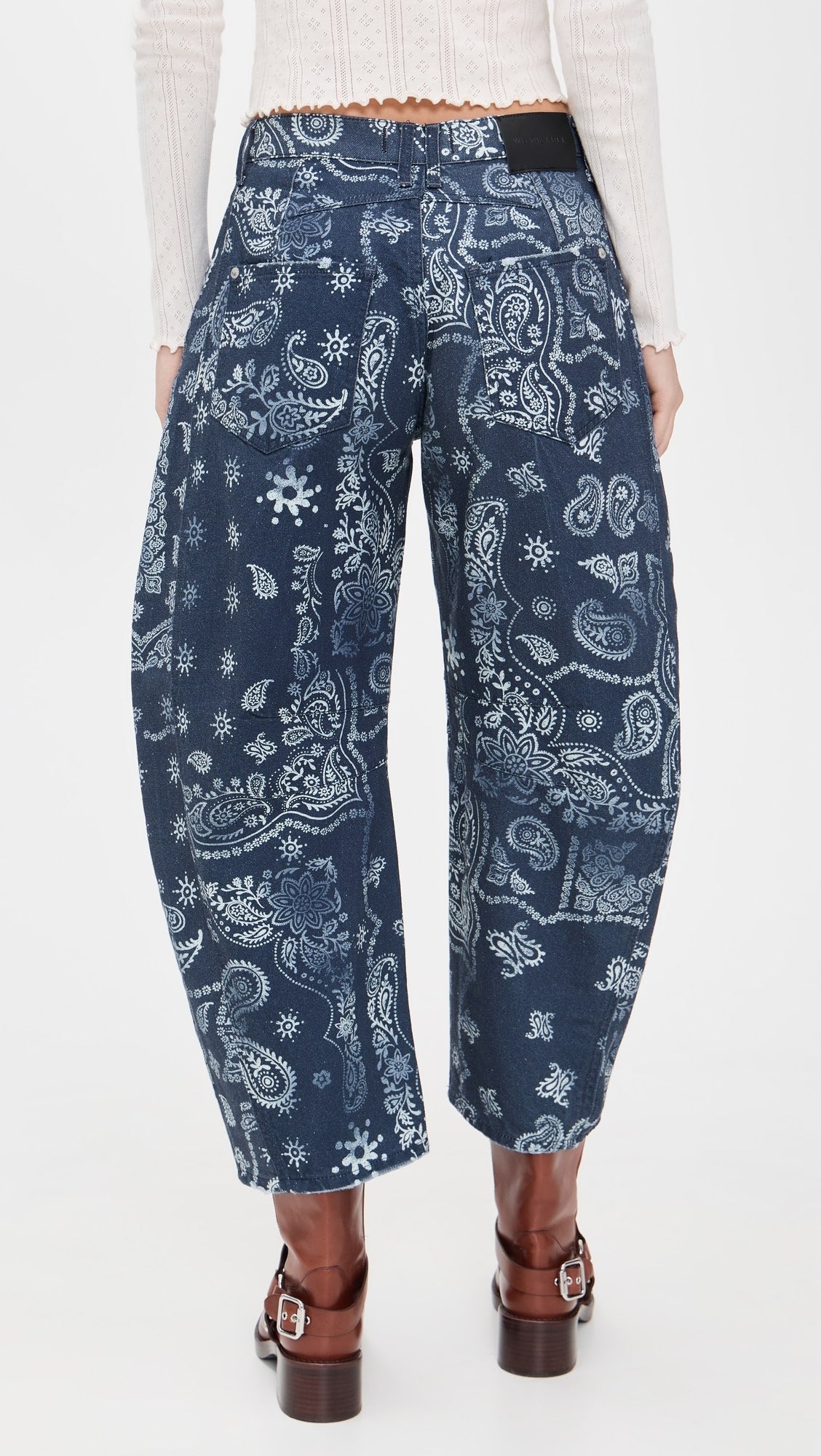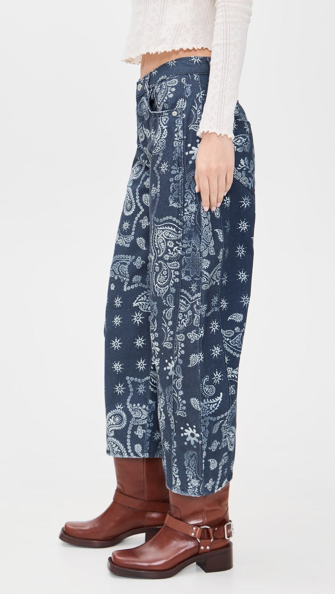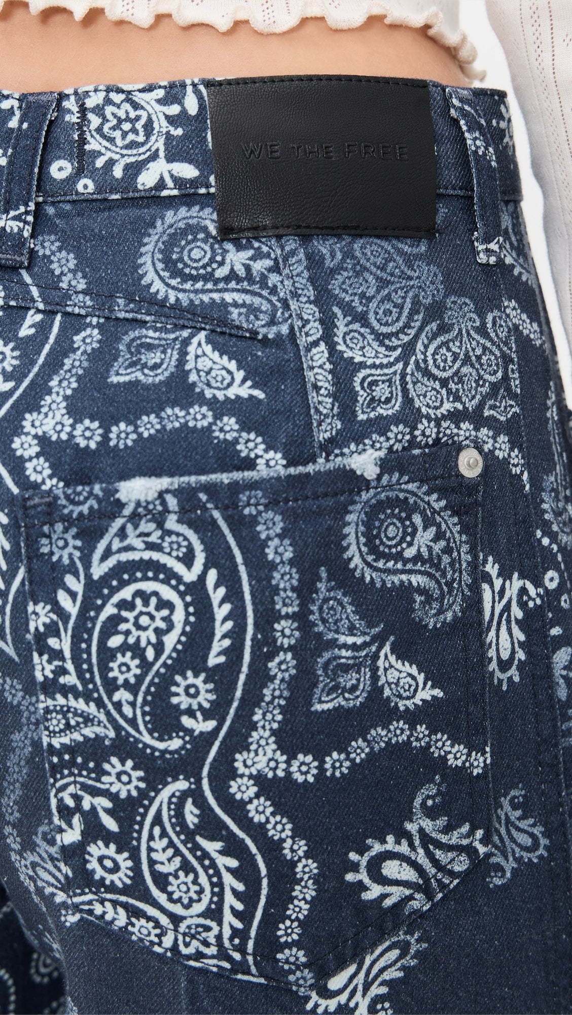 Our most-loved barrel jeans from our We The Free collection, now featured in a playful printed fabrication.