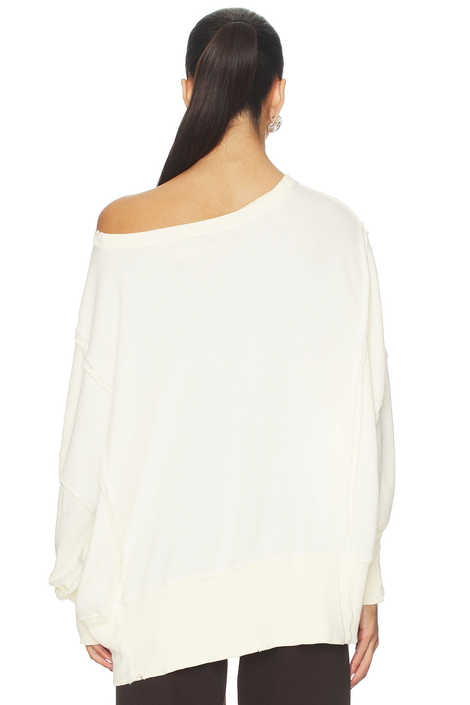 Features: Scoop neckline, dropped shoulders, side slits at bottom, ribbed hems, defined seaming