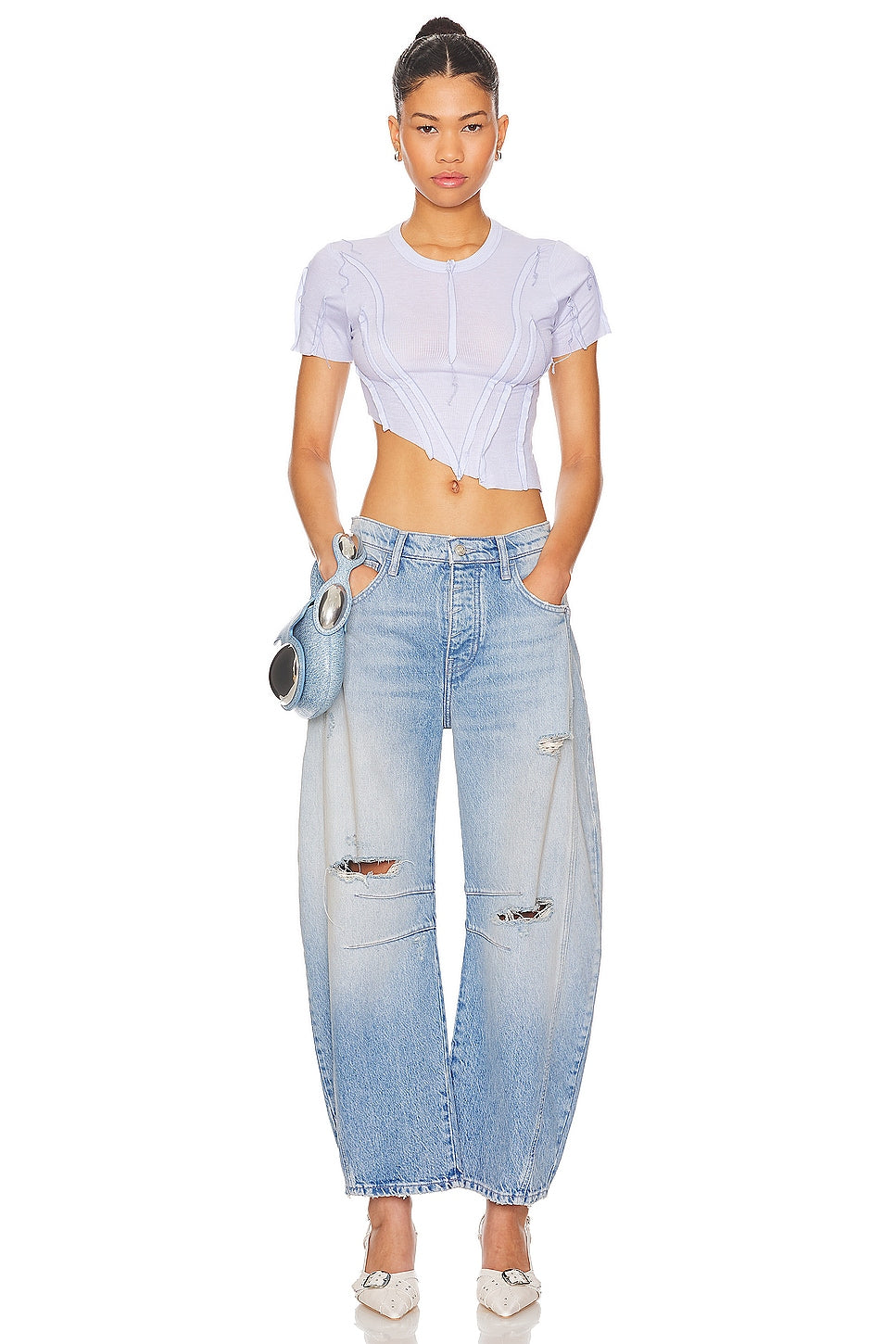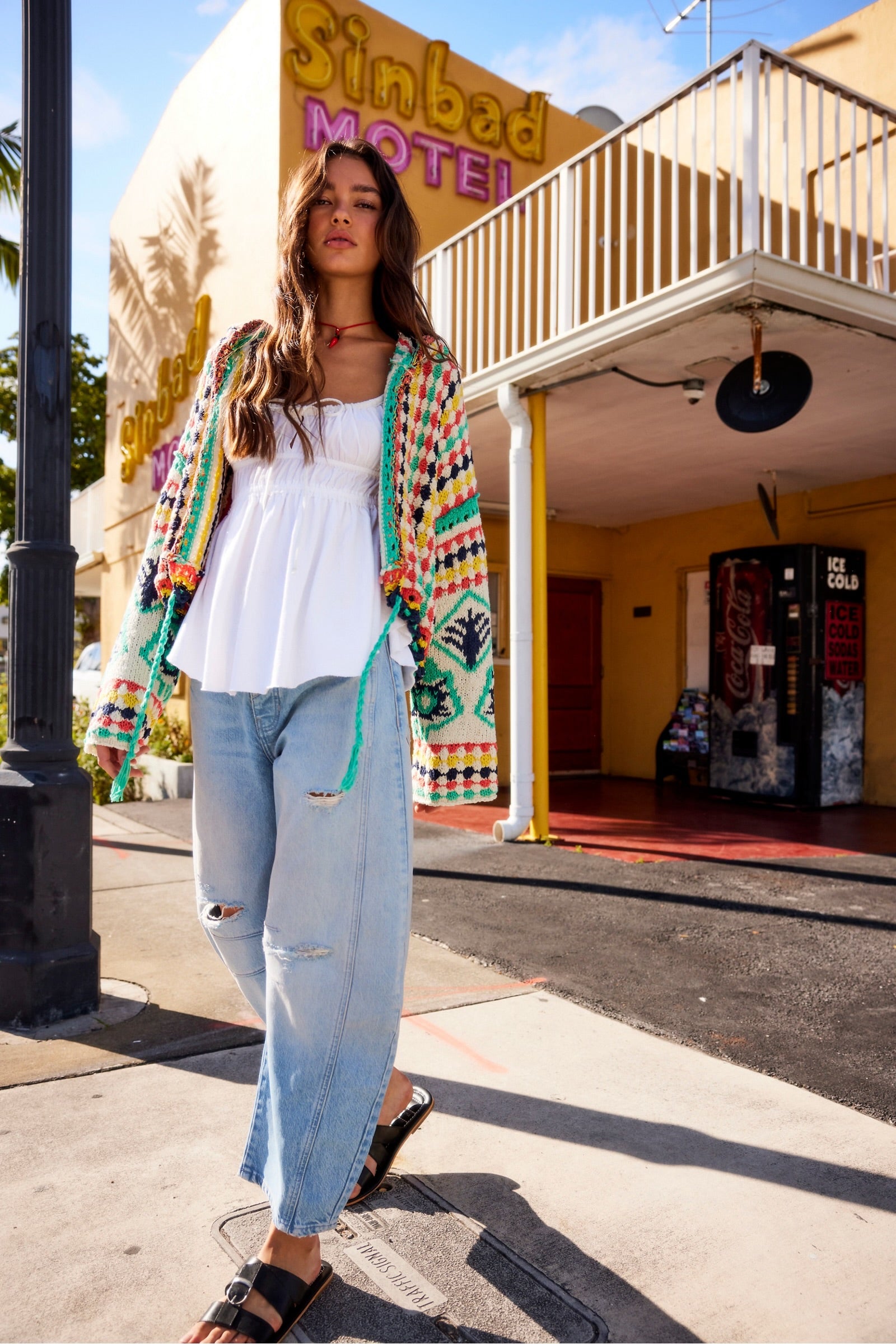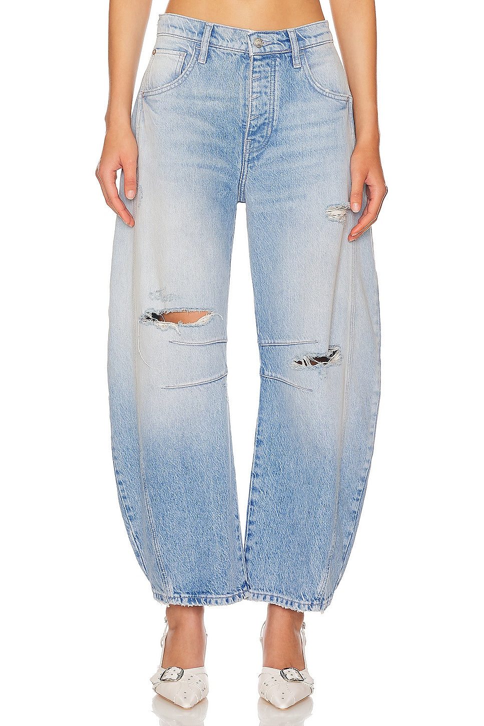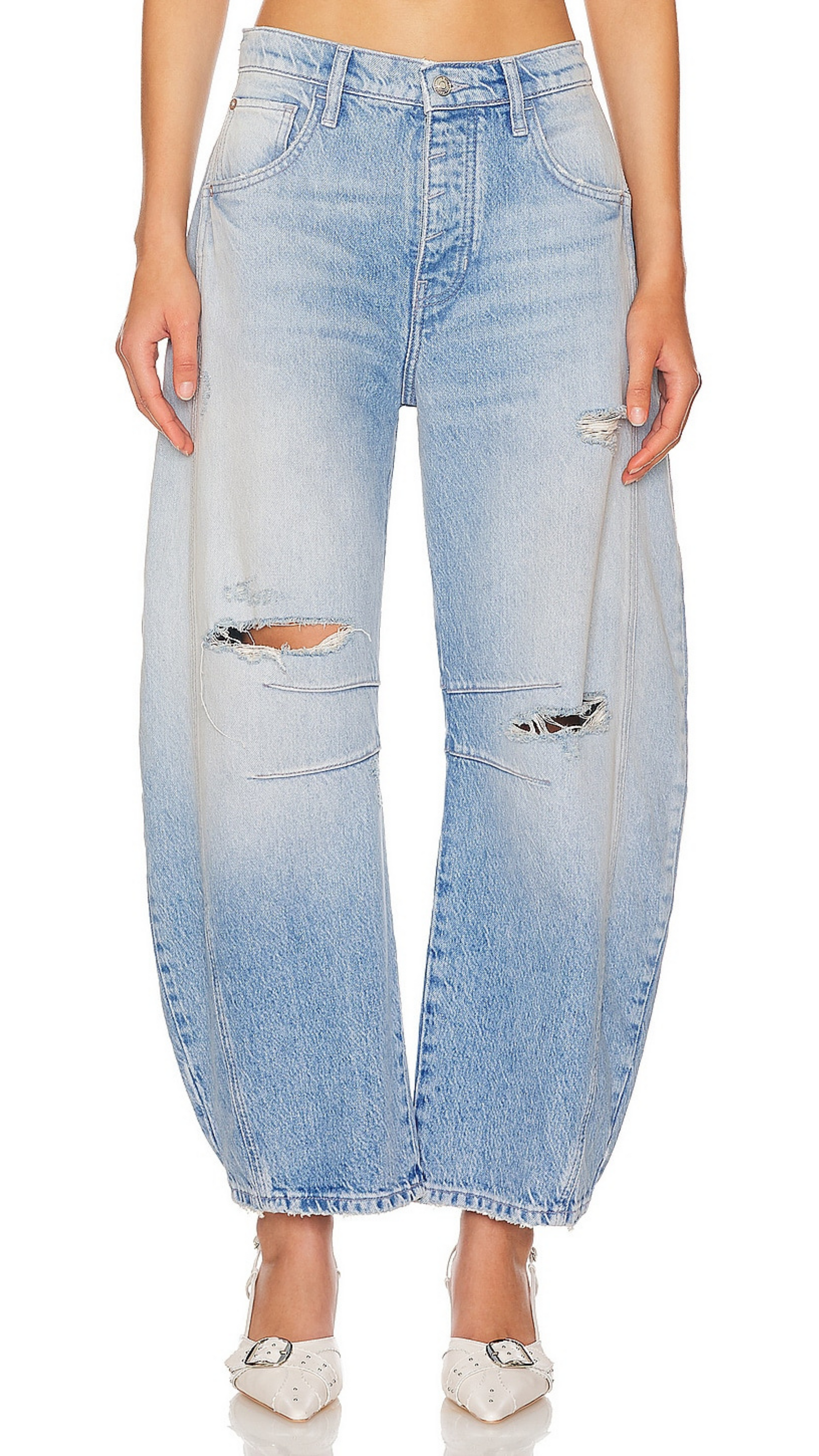 So bold barrel jeans from our We The Free collection featured in a mid-rise fit with subtle distressed detailing and wide-legs that taper at the ankle.